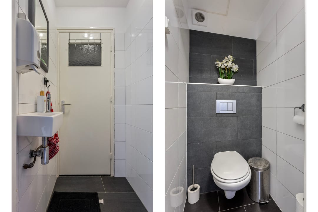 De begane grond is in gebruik als commerciële ruimte en is momenteel verhuurd. Deze nette winkelunit beschikt over een royale winkelruimte met grote raampartijen waardoor goede attentiewaarde en een multifunctioneel inzetbare kantoor-/werkruimte, pantry en separaat toilet. De ligging aan een levendige winkelstrook met onder andere een kapsalon en horeca zorgt voor zichtbaarheid en een stabiele passantenstroom.