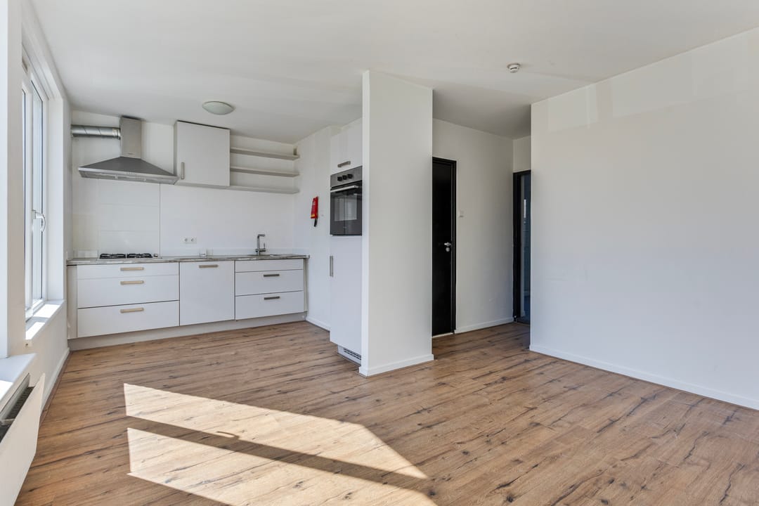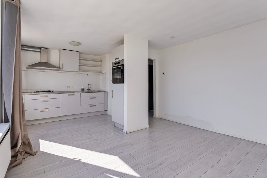 Het appartement op de eerste verdieping is instapklaar en beschikt over een ruime woonkamer met open keuken, een aparte slaapkamer, een moderne badkamer en een groot privé dakterras (ca. 6,3 x 3,8 meter).