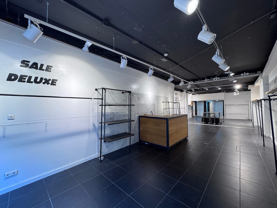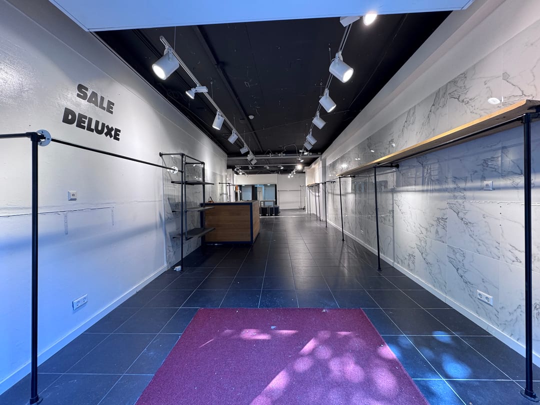 De winkel meet circa 123 m² V.V.O., waarvan ca. 100 m² winkelruimte en de overige ruimte is magazijn met sanitair. Achter de winkel bevindt zich een erf van ca. 20 m².