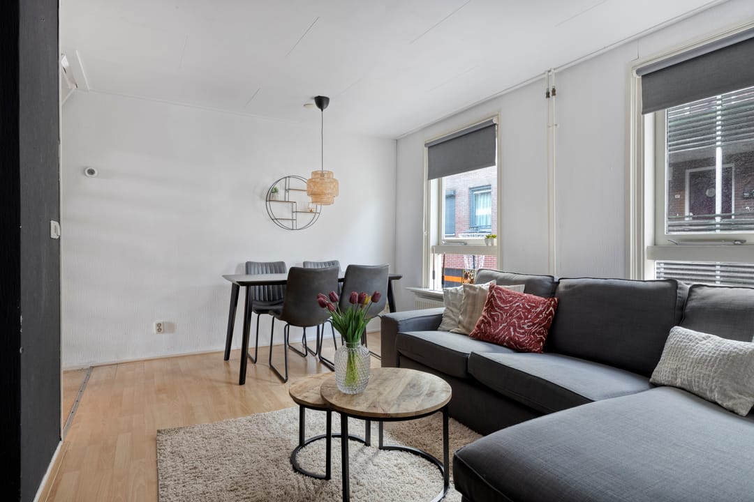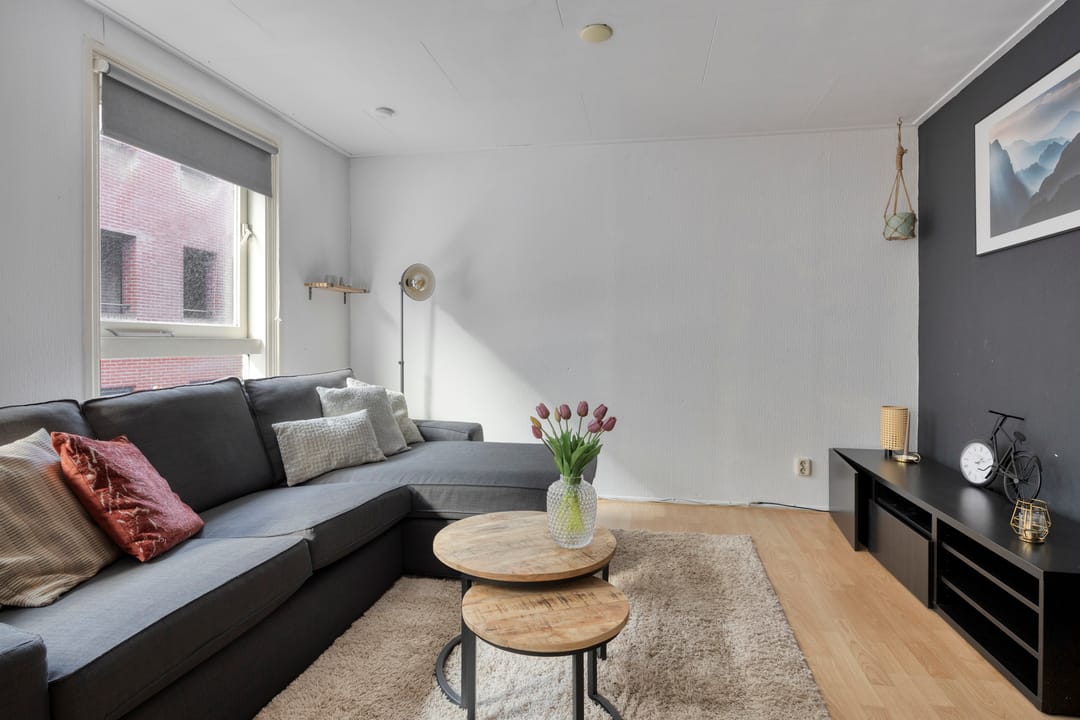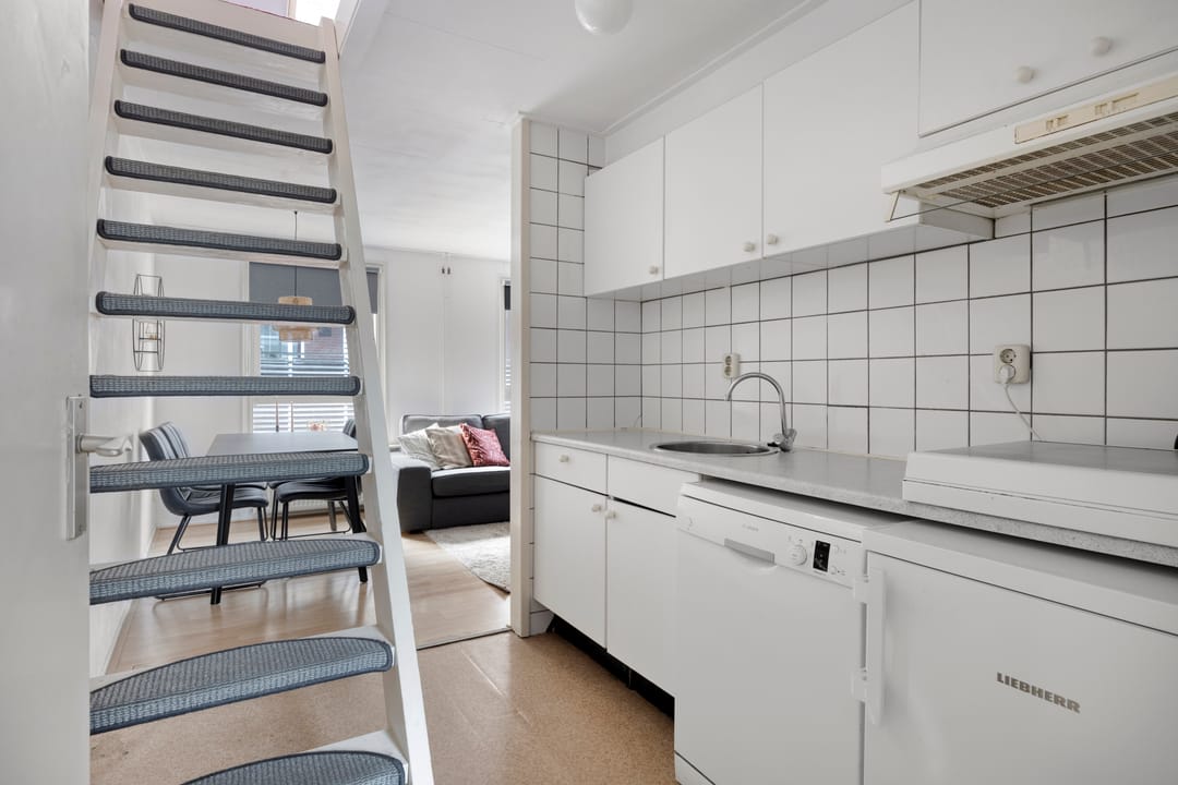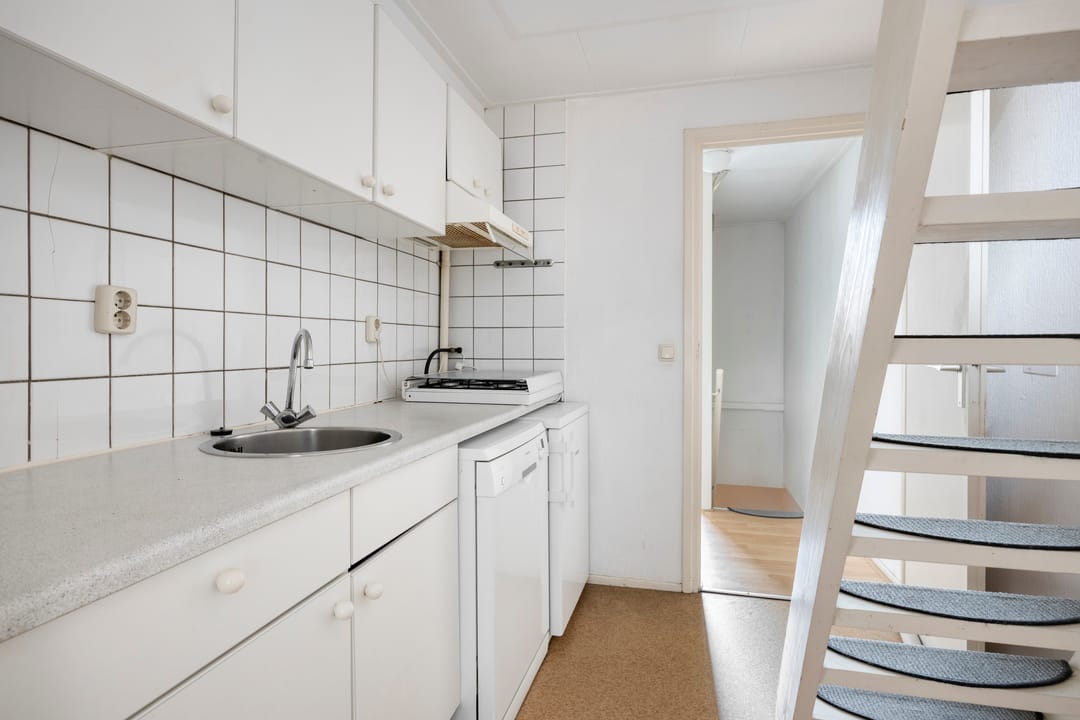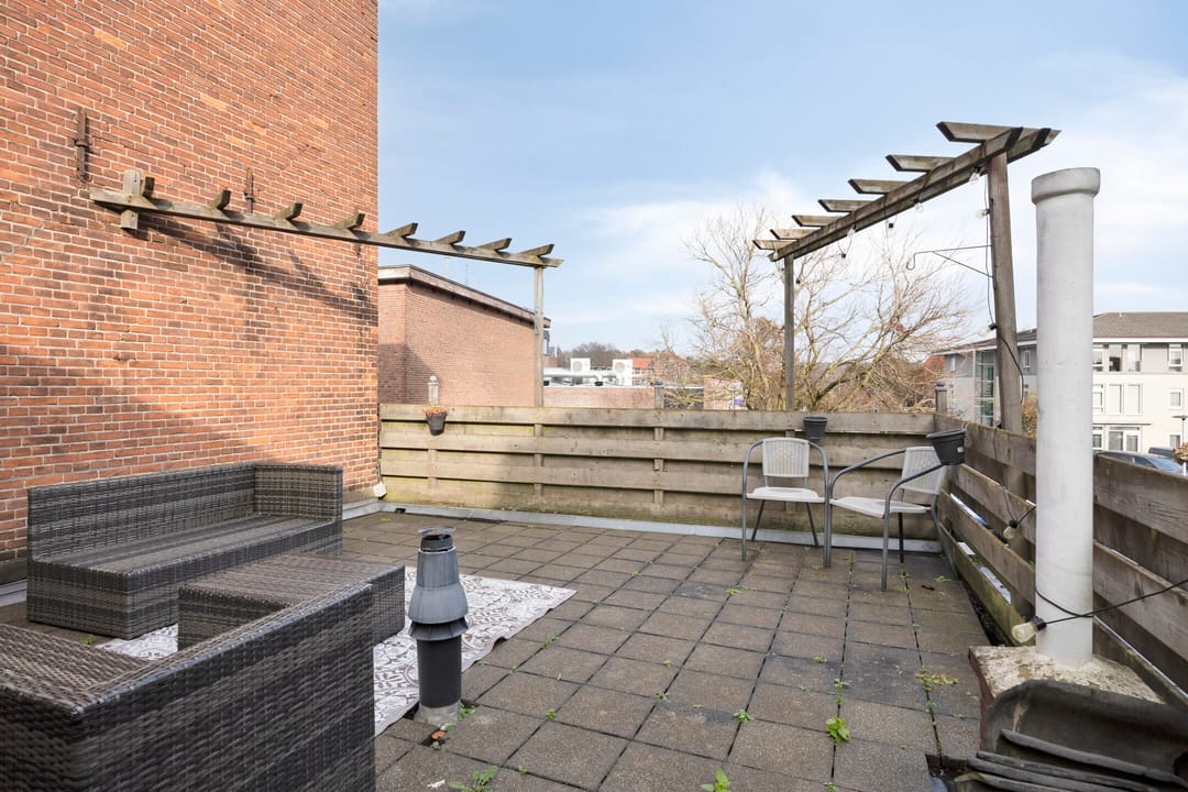 Via de eigen opgang komt u binnen in de hal, van waaruit er toegang is tot zowel het ruime dakterras als de gezellige woonkamer met open keuken. De keuken, in een praktische rechte opstelling is uitgerust met een gaskookplaat, vaatwasser en koelkast. De lichte woonkamer biedt uitzicht op de levendige winkelstraat en is afgewerkt met een laminaatvloer. De slaapkamer bevindt zich in het midden van het appartement, is daardoor heerlijk rustig en heeft een lichtkoepel voor voldoende daglicht. De badkamer is compact maar functioneel ingericht met een douche, wastafel en toilet.