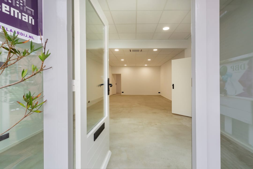 In totaal is de ruimte ca. 76m2 groot, met een mooie frontbreedte en centrale deur. Aan de achterzijde is een separate ruimte met de voorbereidingen voor een pantry, vervolgens is er nog een vernieuwde toiletruimte aanwezig. De ruimte is voorzien van een nieuw systeemplafond met verlichting en de verwarmingsunit/airconditioning. Op deze locatie kunt u veel kanten op, zowel voor het gebruik als winkel-, praktijk-, kantoor of andere bedrijfsruimte.