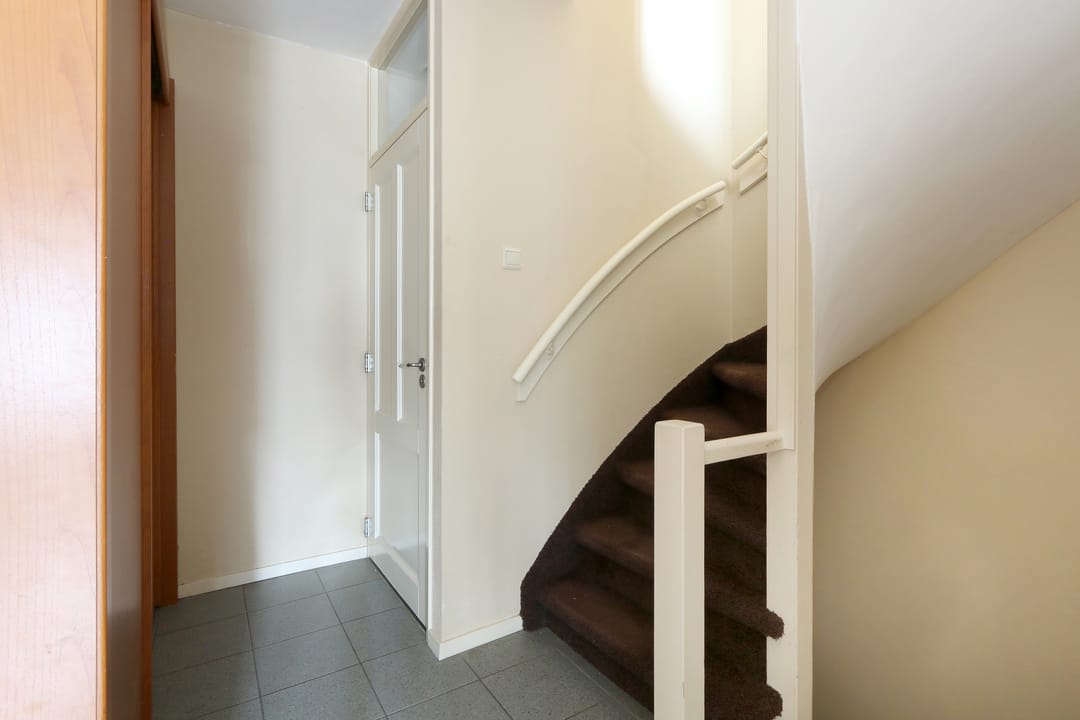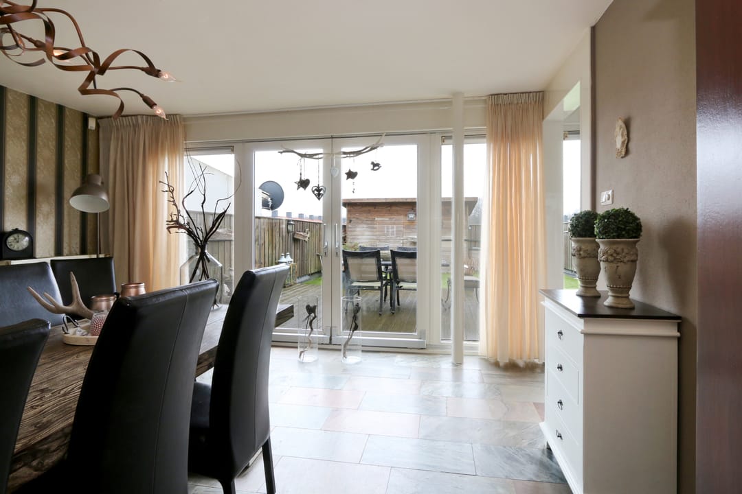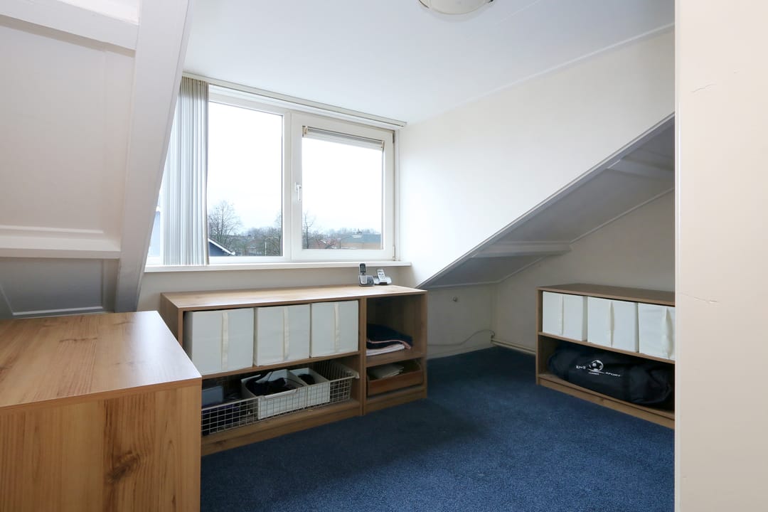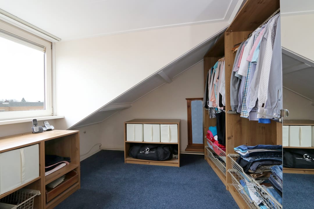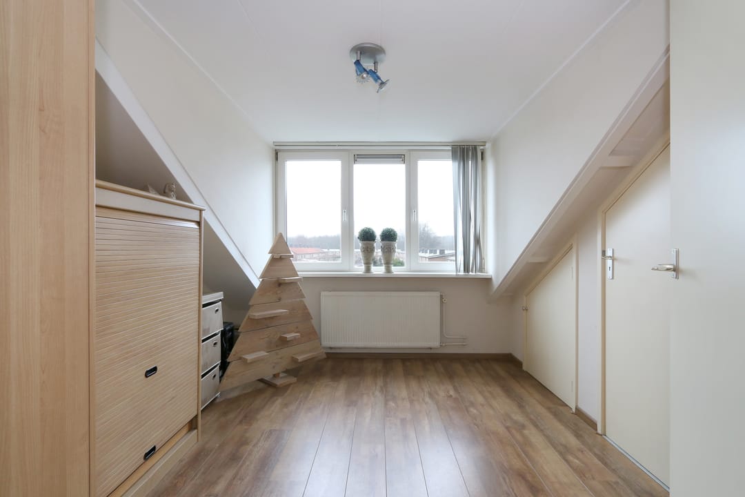 Bovenhal voorzien van tegelvloer (over de gehele verdieping gedeeltelijk voorzien van vloerverwarming), toilet met wandcloset. Luxe badkamer met 2 wastafels, douche en een bubbelbad. Was-/bergruimte. Ruime woonkamer met tuindeuren naar zeer ruim dakterras op het zuiden. Keuken voorzien van combimagnetron, afzuigkap, koelkast, elektrische gaskookplaat en een deur naar het dakterras.