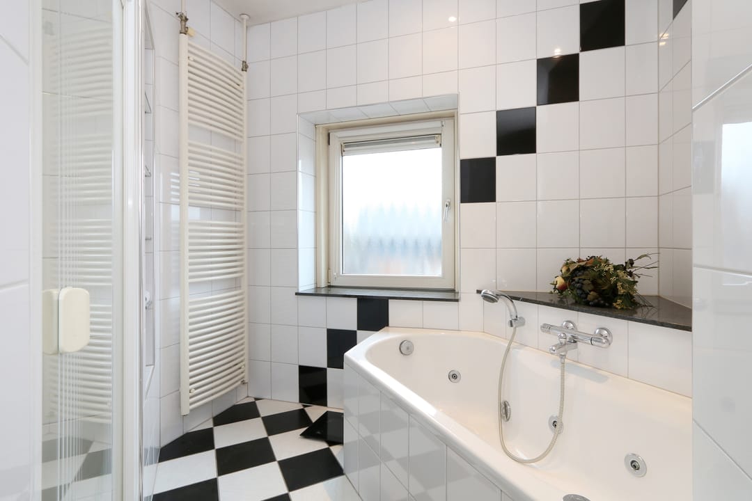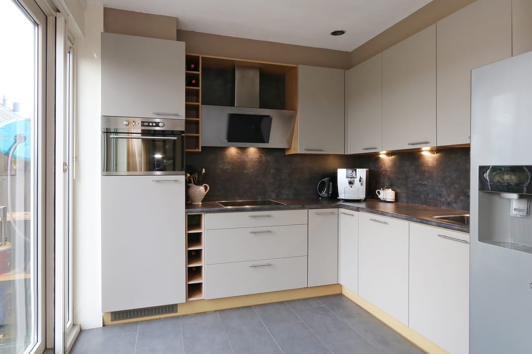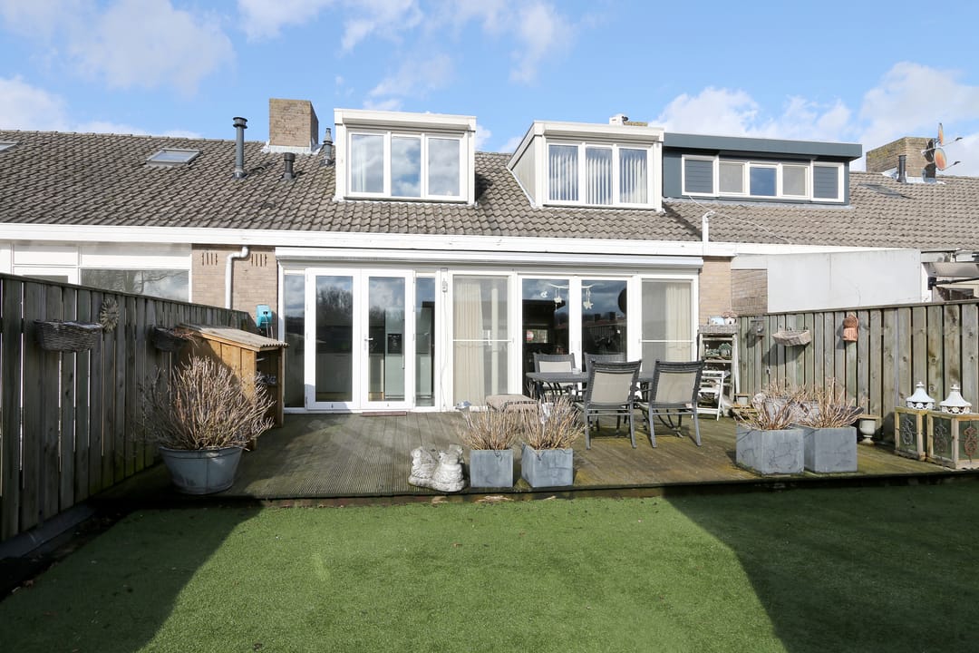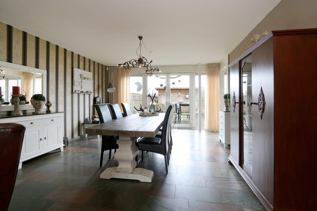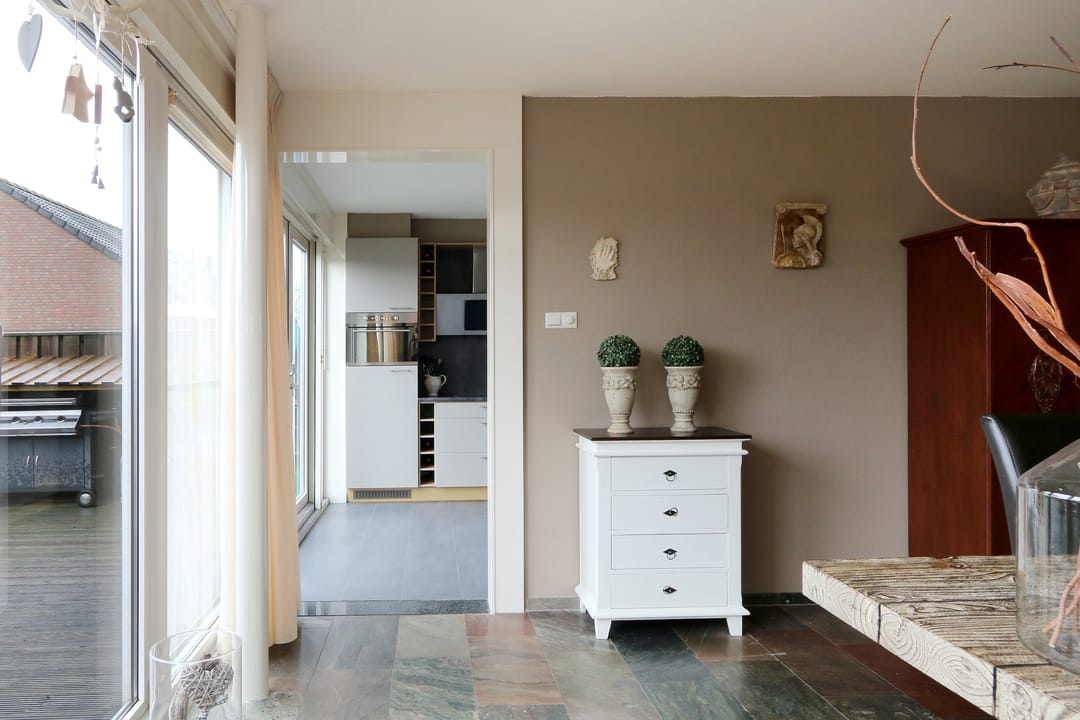 Bovenhal voorzien van tegelvloer (over de gehele verdieping gedeeltelijk voorzien van vloerverwarming), toilet met wandcloset. Luxe badkamer met 2 wastafels, douche en een bubbelbad. Was-/bergruimte. Ruime woonkamer met tuindeuren naar zeer ruim dakterras op het zuiden. Keuken voorzien van combimagnetron, afzuigkap, koelkast, elektrische gaskookplaat en een deur naar het dakterras.