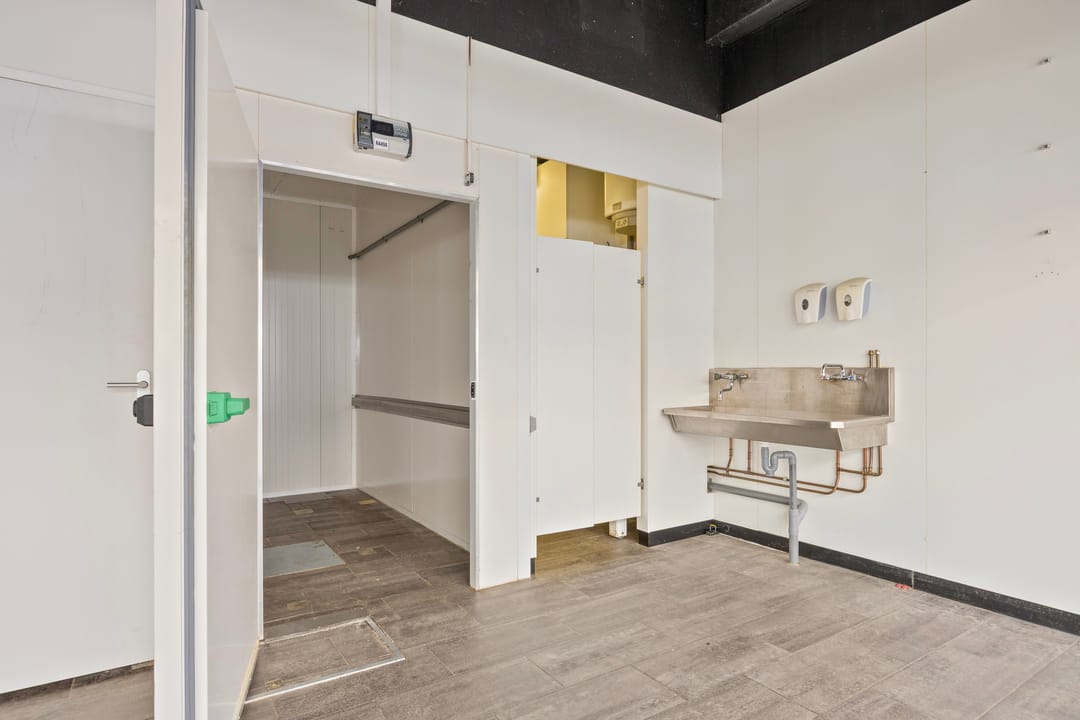 De winkelruimte is praktisch ingericht en voorzien van een tegelvloer met put, industriële wastafel met dubbele kraan, airconditioning en verlichtingsarmaturen. De aanwezige koelcel biedt uitstekende mogelijkheden voor ondernemers die werken met verse of gekoelde producten. De glazen pui in combinatie met de hoekligging zorgt voor een opvallende en lichte presentatie, wat bijdraagt aan de zichtbaarheid en aantrekkingskracht van de winkel. Het object leent zich bij uitstek voor een delicatessezaak zoals een slager, notenspeciaalzaak, kaasboer of traiteur.