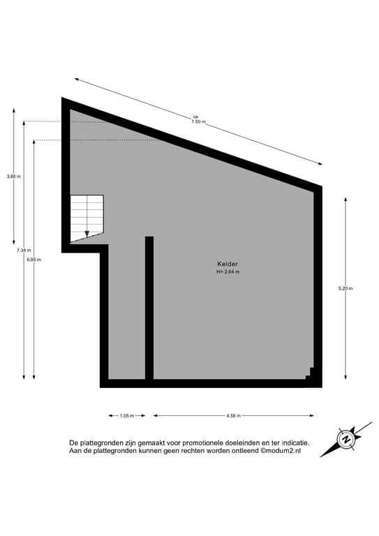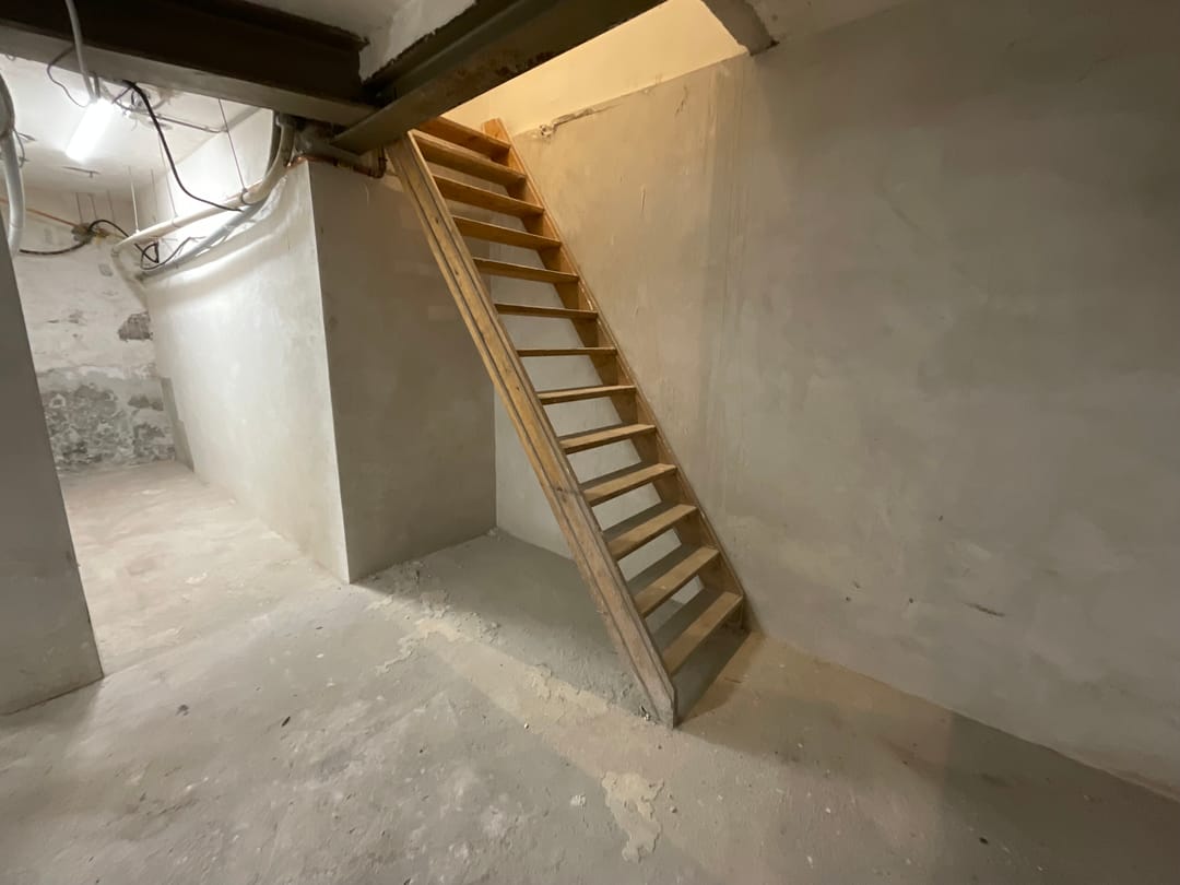 Vaste trap naar de zeer ruime opslagruimte met daglichttoetreding met een hoogte van 2,64meter.