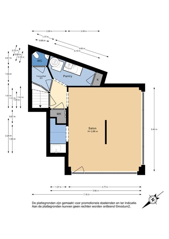 - voor de indeling en maatvoering wordt verwezen naar de plattegronden