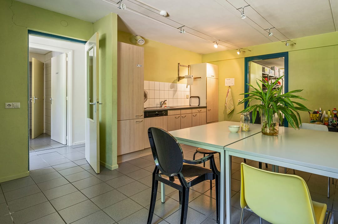 Boven bevindt zich bovendien een woonhuis, ideaal voor combinatie van werken en wonen.