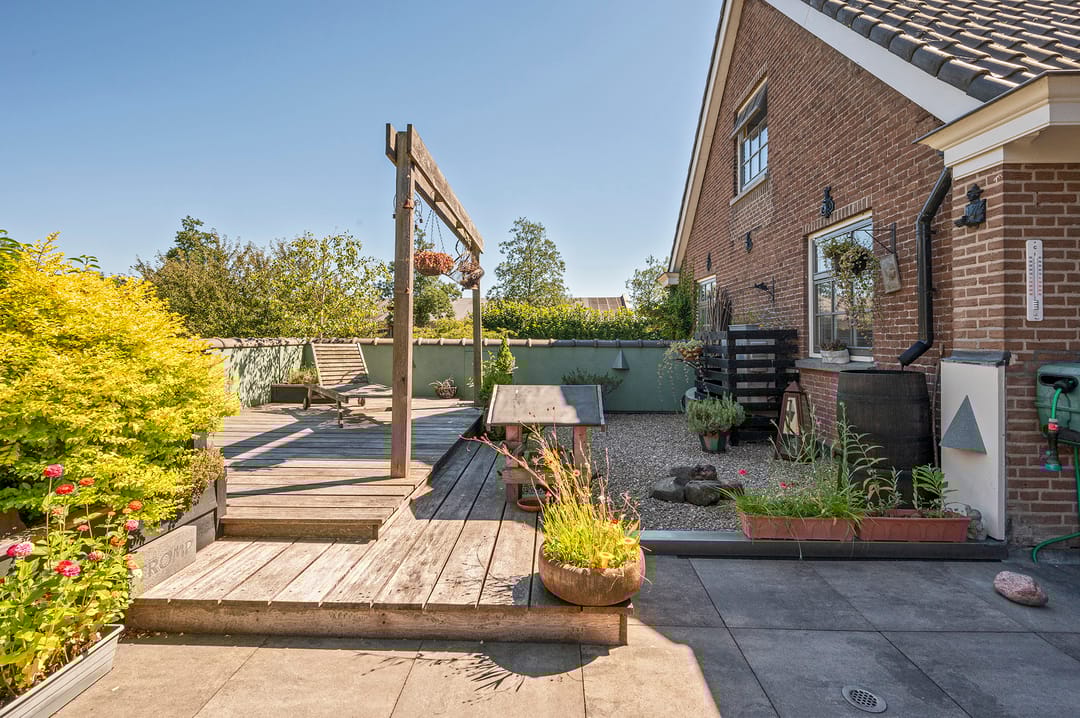Buiten: grenzend aan de keuken heb je een mooi dakterras, hier kun je lekker genieten van de rust.