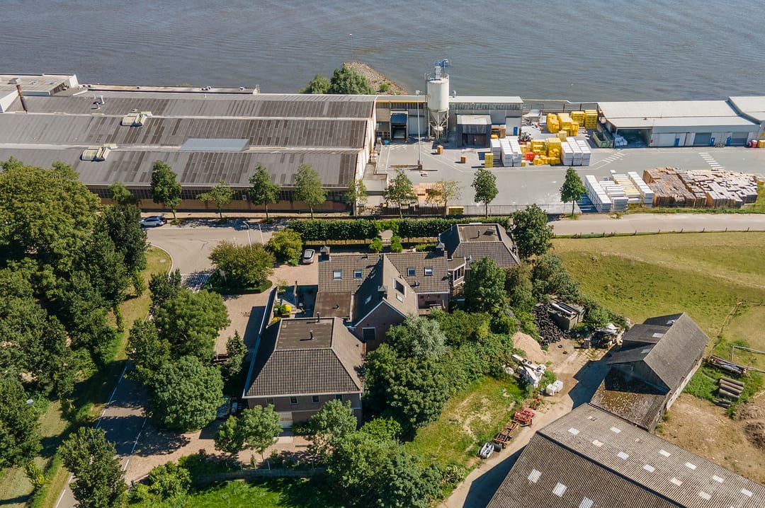 De ligging aan de dijk geeft het pand niet alleen een fraaie uitstraling, maar zorgt ook voor een vrije, ruimtelijke sfeer. Aan de voorzijde ligt een groot eigen parkeerterrein met volop ruimte voor klanten en personeel, wel zo praktisch.