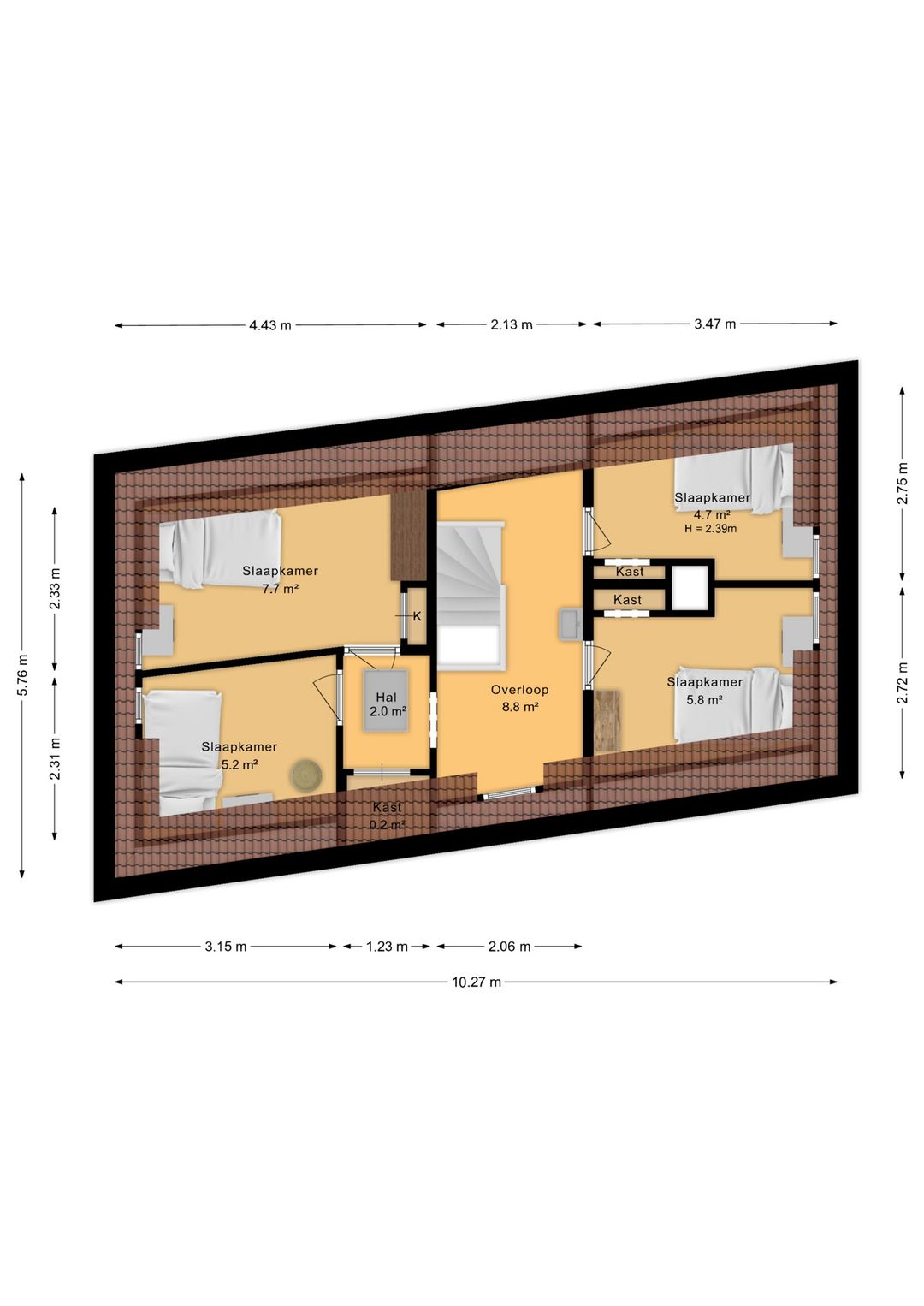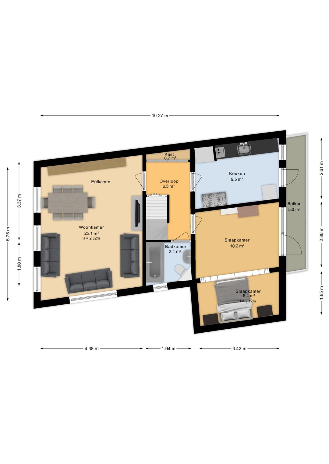 Oppervlakte: ca. 107 m² (GBO) - meetrapporten beschikbaar.