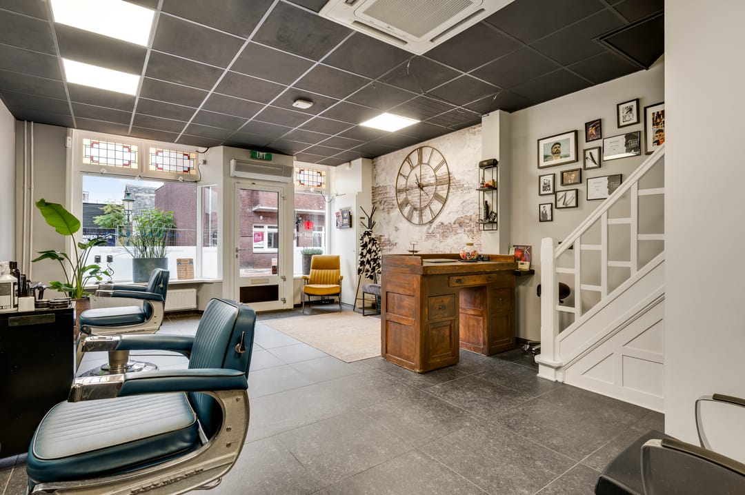 De begane grond bestaat uit een representatieve winkelruimte van ca. 36 m² aan de straatzijde. Dankzij de hoge raampartijen, het glas-in-lood boven de entree en de karakteristieke gevel heeft deze ruimte een herkenbare uitstraling binnen het straatbeeld. De tegelvloer, het systeemplafond met verlichting en de airco zorgen voor een nette werkomgeving die geschikt is voor onder meer detailhandel of dienstverlening.