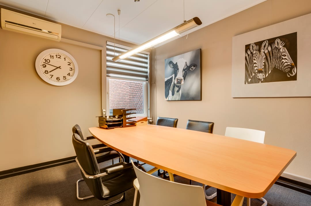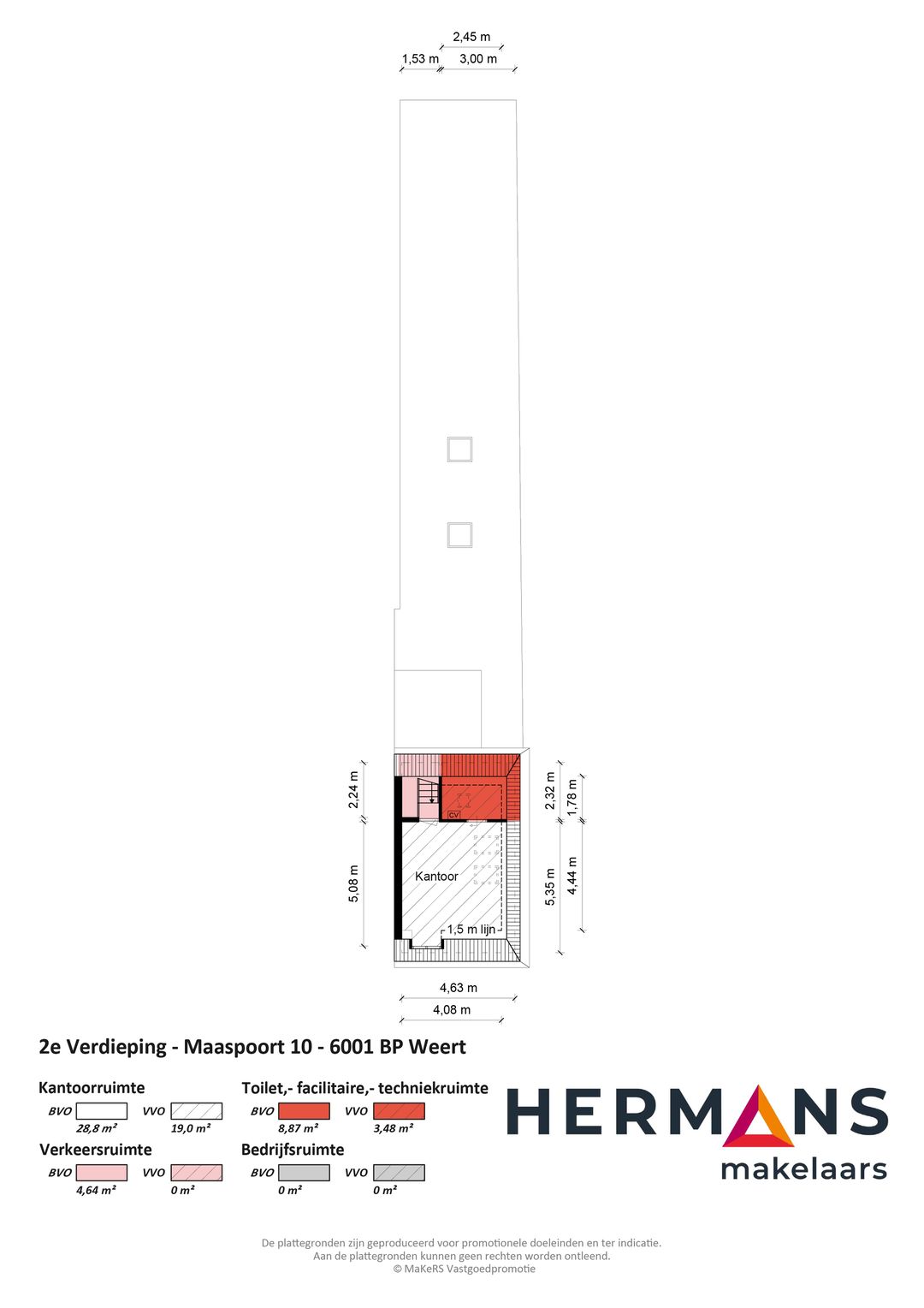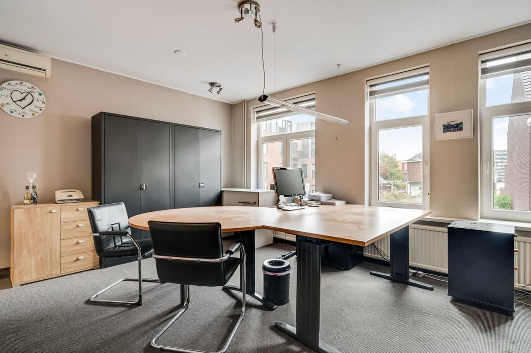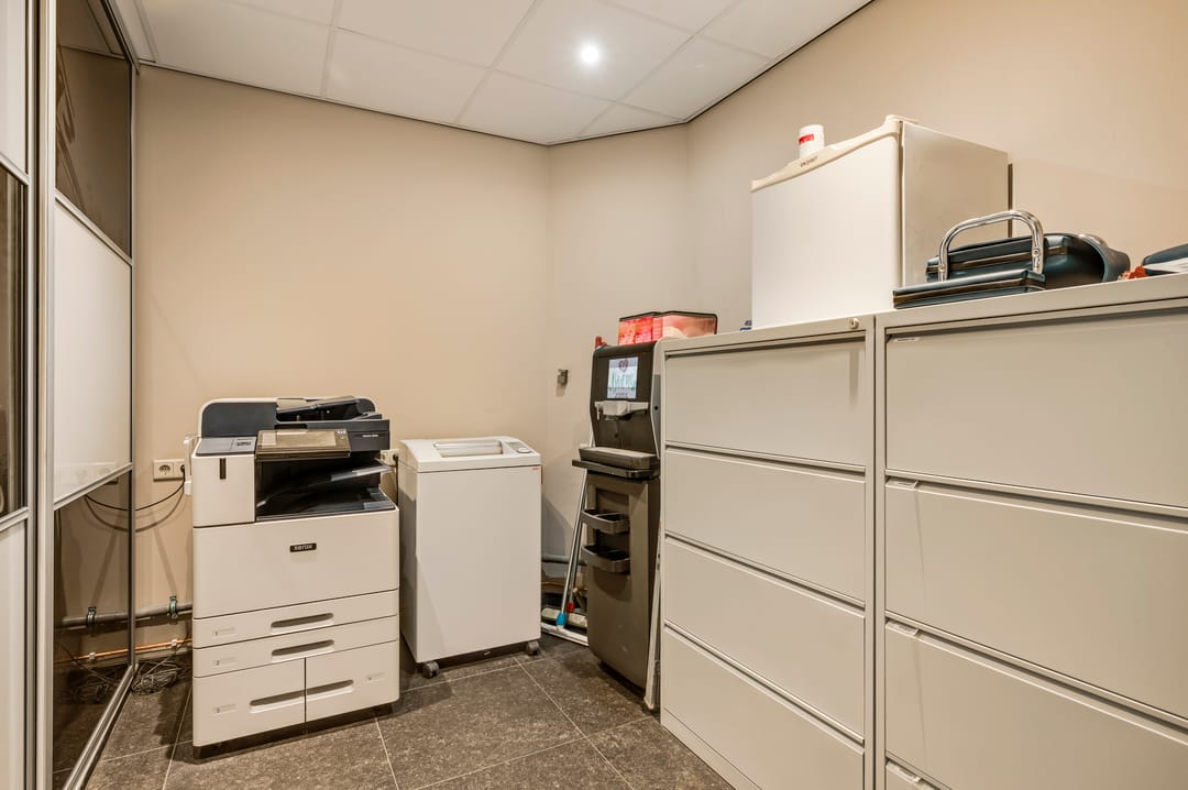 Achter de winkelruimte bevindt zich een ruim kantoor van ca. 79 m². Deze ruimte heeft vloerverwarming en meerdere lichtkoepels die zorgen voor een prettige lichtinval. Via een zijdeur is de achterzijde van het pand bereikbaar, waarvoor een recht van overpad geldt via Maaspoort 12. In dit gedeelte bevinden zich ook de gemeenschappelijke voorzieningen, waaronder de gang, de pantry en het toilet. De pantry is volledig ingericht met een gasfornuis, combioven, afzuiging, koelkast en boiler. Door de functionele indeling en afwerking is dit deel van het pand geschikt als kantoor of ondersteunende werkruimte.