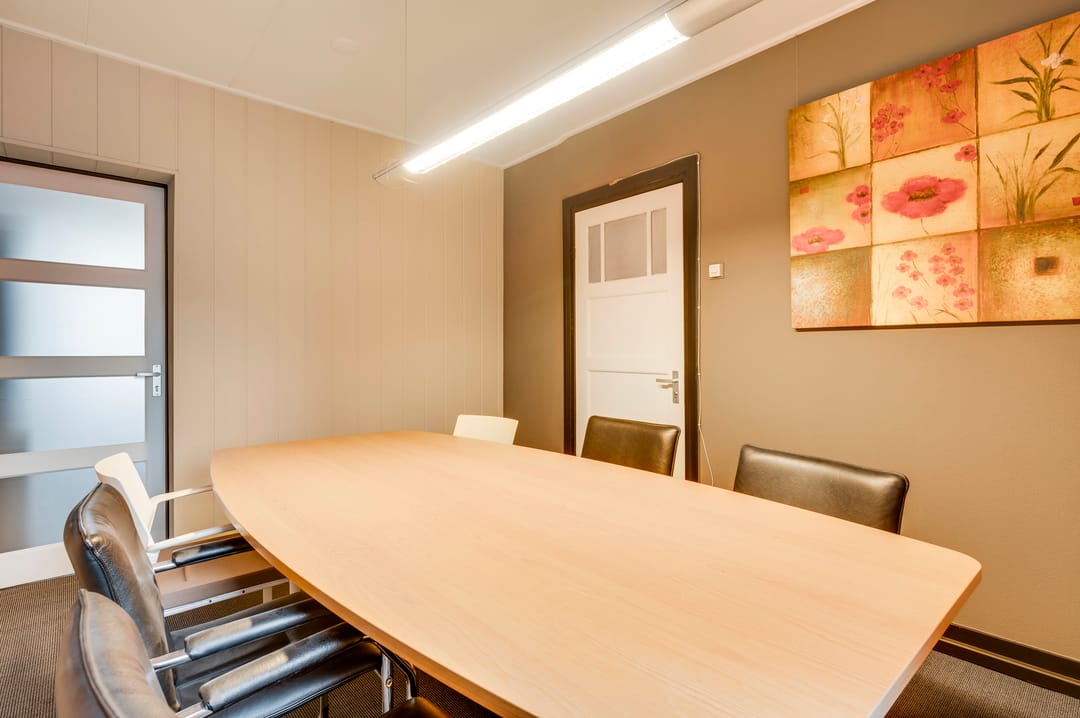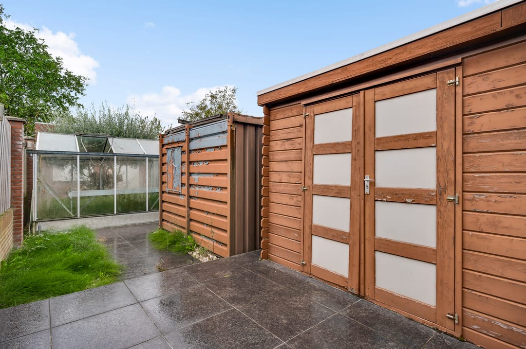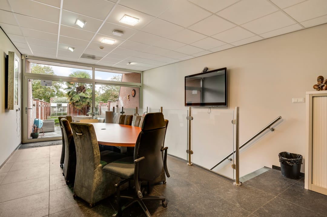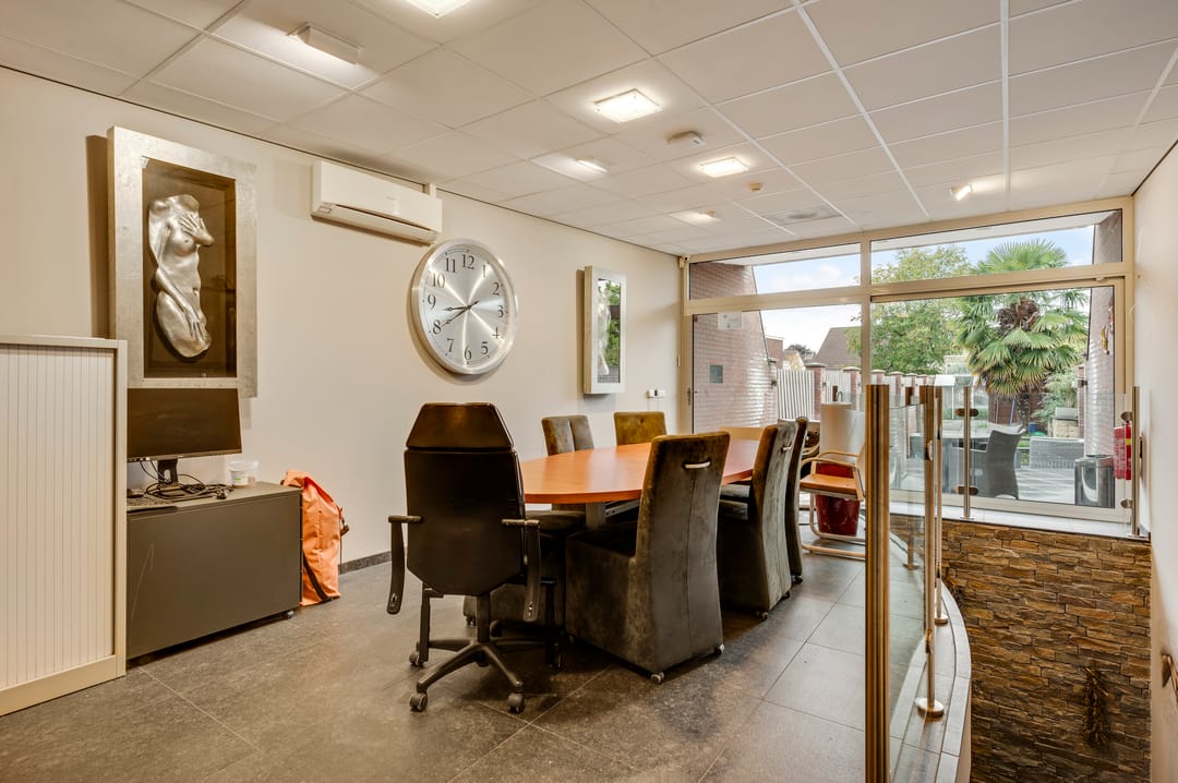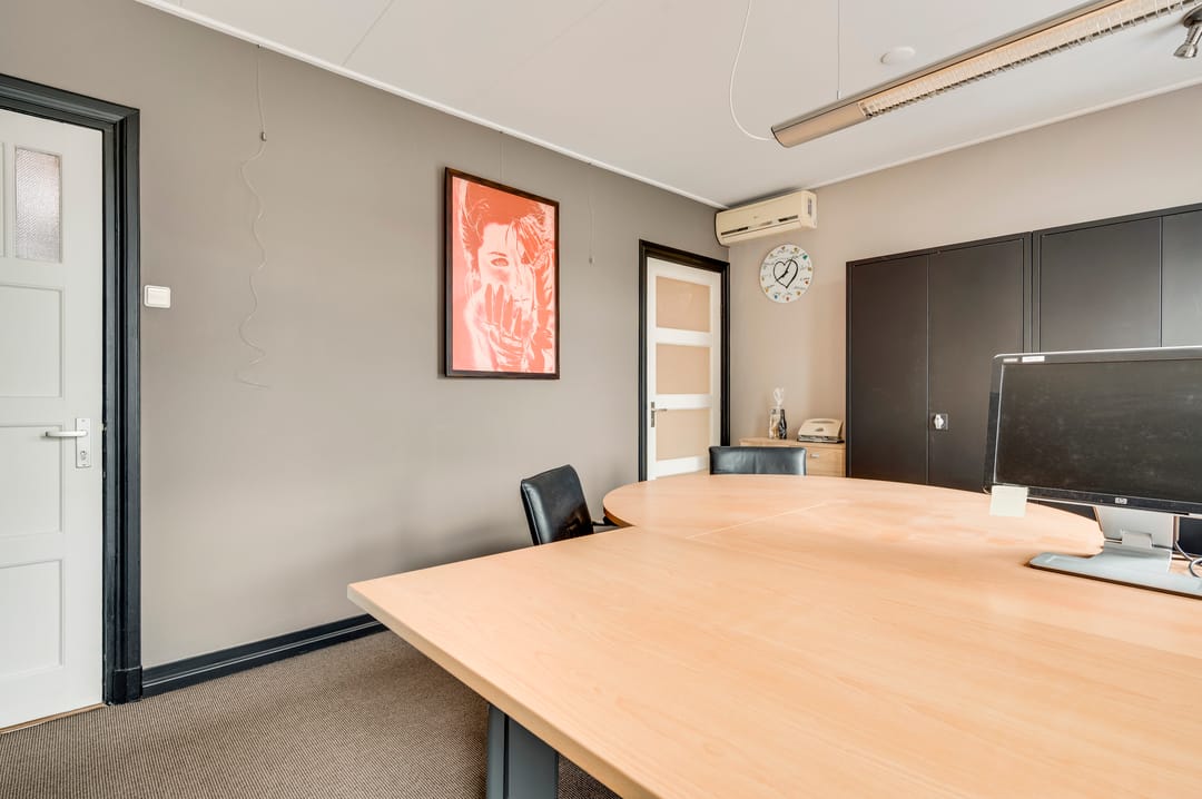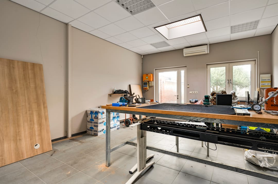 Achter op het perceel ligt een zelfstandige bedrijfsruimte van circa 62 m². De ruimte is verdeeld over twee delen en beschikt over een eigen cv-installatie, radiatoren, systeemplafond, airco, lichtkoepels, krachtstroom en een extra groepenkast. Dankzij deze voorzieningen is deze ruimte uitstekend geschikt als werkplaats, atelier of ondersteunende bedrijfsruimte. Vanuit de tuin is bovendien toegang tot twee bergingen, deze kunnen worden gebruikt voor opslag van materialen of gereedschap.
