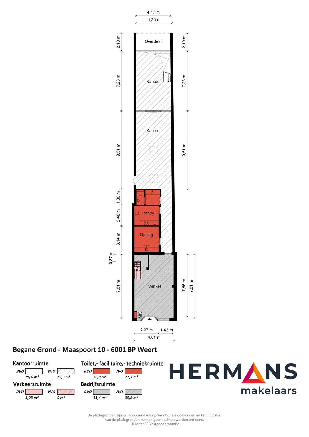 Aan de Maaspoort 10 in Weert bevindt zich een veelzijdig en karakteristiek pand met een unieke indeling die commerciële en kantoorfuncties op een natuurlijke manier combineert. De totale gebruiksoppervlakte bedraagt ca. 294 m², verdeeld over een winkelruimte aan de voorzijde, kantoor aan de achterzijde en op de verdiepingen, een kelder, een separate bedrijfsruimte aan de achterzijde en een berging in de tuin. Daarmee biedt dit object ondernemers de mogelijkheid om werken, ondernemen en opslaan te combineren op één goed bereikbare locatie in het centrum van Weert.