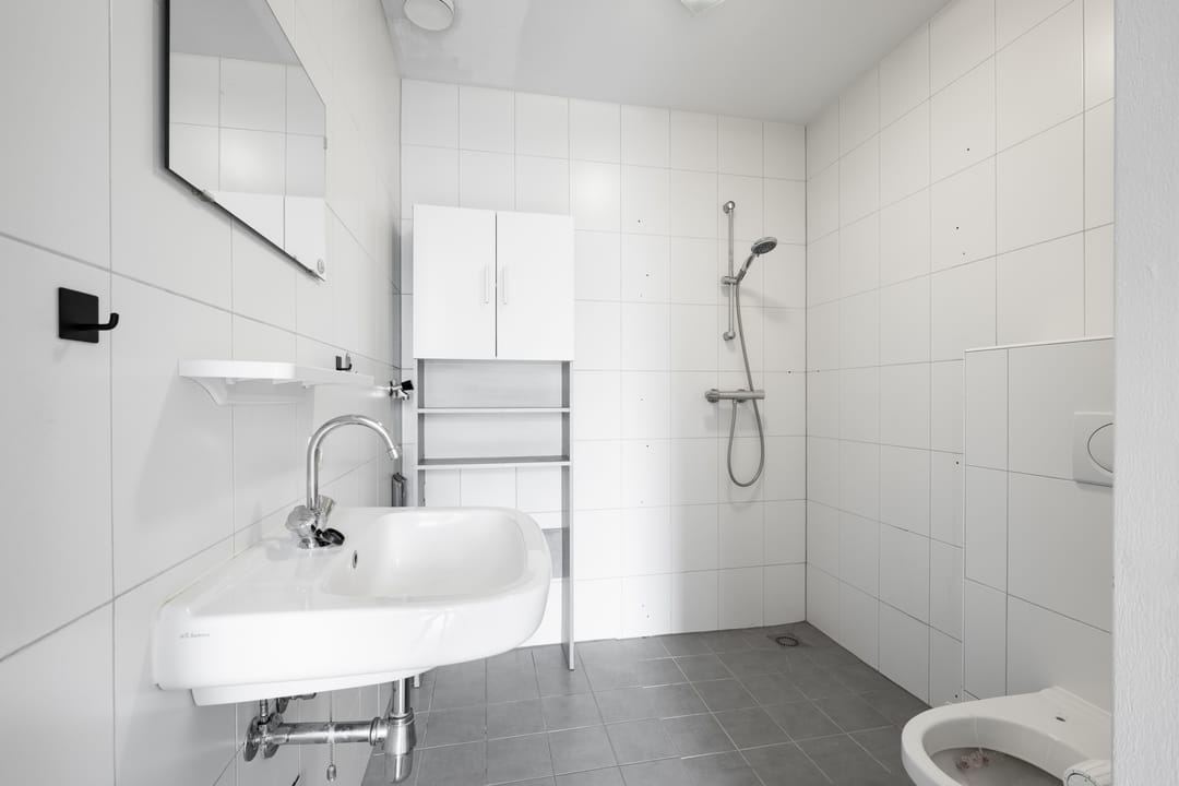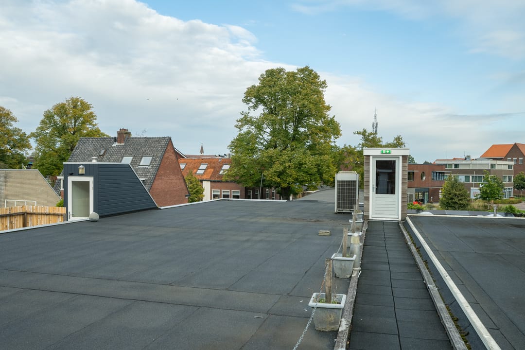 Het appartement bevindt zich op de eerste verdieping. Via het terras bereik je de gezamenlijke entree met toegang tot de hal van het appartement. Vanuit de hal heb je toegang tot de provisiekast, trapkast, keuken en badkamer. De badkamer is voorzien van een douche, toilet, wastafel en een aansluiting voor de wasmachine.