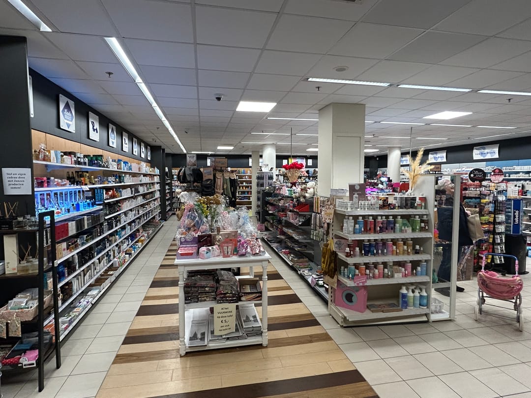 • Interieur (glasplaten, stellingen) en beveiligingscamera’s worden ter overname aangeboden