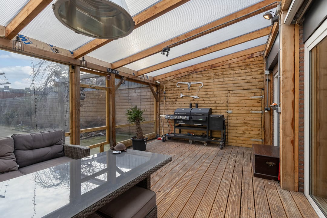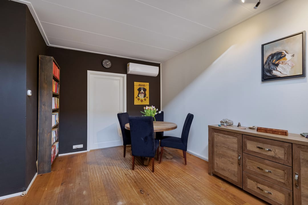 De woning beschikt over een royale woonkamer met eetgedeelte en een tuingerichte serre, waardoor er veel daglicht en een prettige verbinding met buiten ontstaat. Op de verdieping bevinden zich vier slaapkamers en extra bergruimte.
