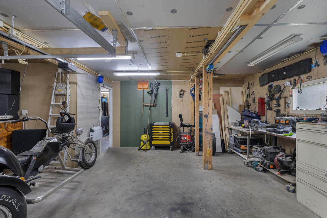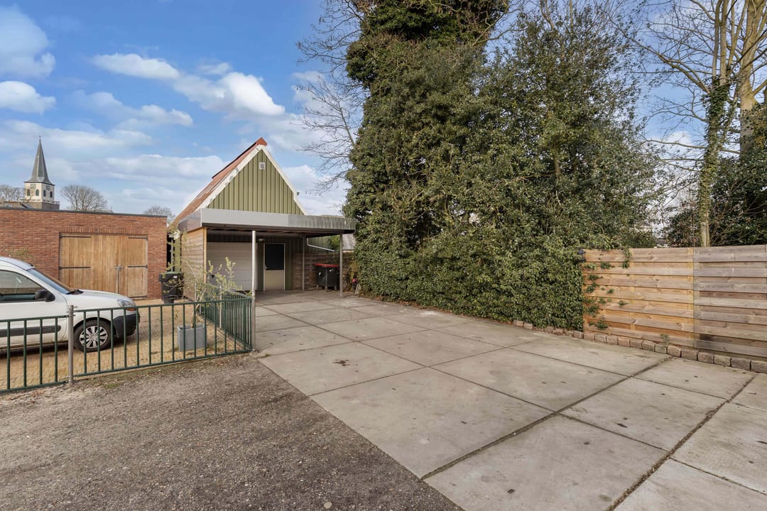 Een absolute meerwaarde is de vrijstaande garage met verdieping, voorzien van elektrische overheaddeur, inpandige berging en vaste trap, wat uiteenlopende gebruiksmogelijkheden biedt.