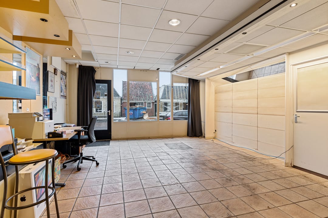Het object bestaat uit twee samengevoegde panden met aan de voorzijde een winkelruimte (circa 48 m²) en daarachter een diepe en brede bedrijfsruimte (circa 415 m²). De bedrijfsruimte is grotendeels voorzien van tegelvloeren en betegelde wanden, passend bij het voormalige gebruik als bakkerij. De opzet is functioneel met meerdere afzonderlijke ruimten en een duidelijke routing vanaf de straat naar het achterterrein.