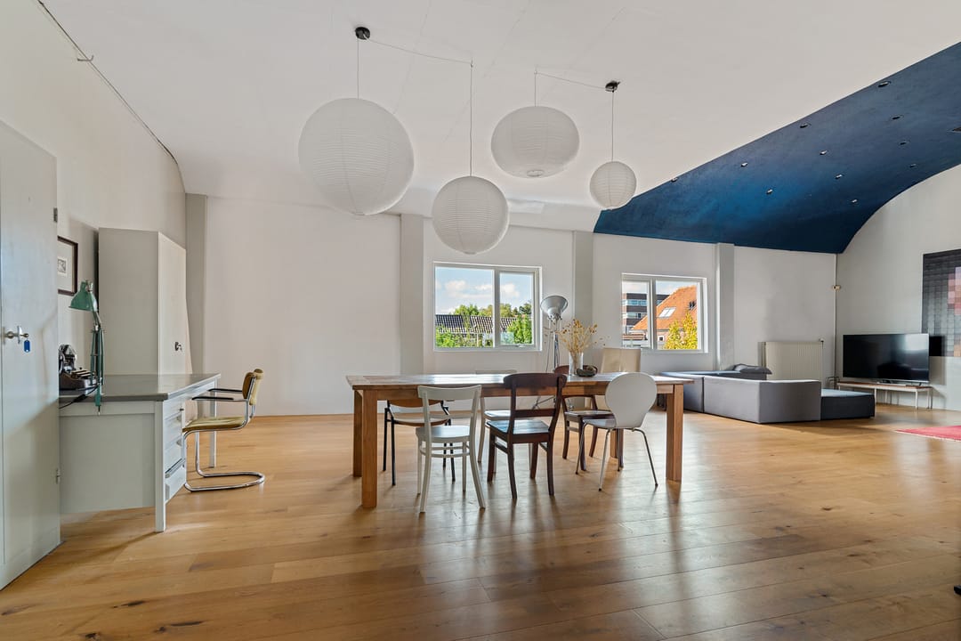 De woonruimte bestaat uit twee etages, een zelfstandige ruimte, en is bereikbaar via een separate entree aan de zijkant van het pand. De woning heeft een woonoppervlak van circa 85 m² en bestaat onder andere uit een hal met toilet en trapopgang, woonkamer met open keuken, badkamer, een tweetal slaapkamers, vaste bergruimte en een tweetal dakterrassen.
