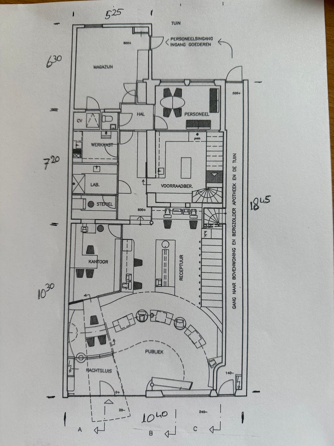 De huidige indelingsruimte is dan dus ook onderverdeeld in een winkelruimte met balie functie en daarachter gelegen diverse kamers en kantoren. Er zijn enkele dragende muren maar kan het overige verwijderd worden waardoor een grote, functionele en overzichtelijke ruimte ontstaat. De huidige inrichting zal door een willekeurige toekomstig gebruiker wellicht niet als bruikbaar worden gezien, maar voel u vrij dit te verwijderen.