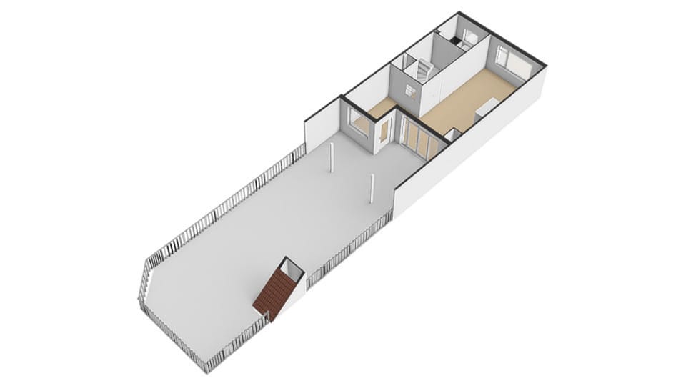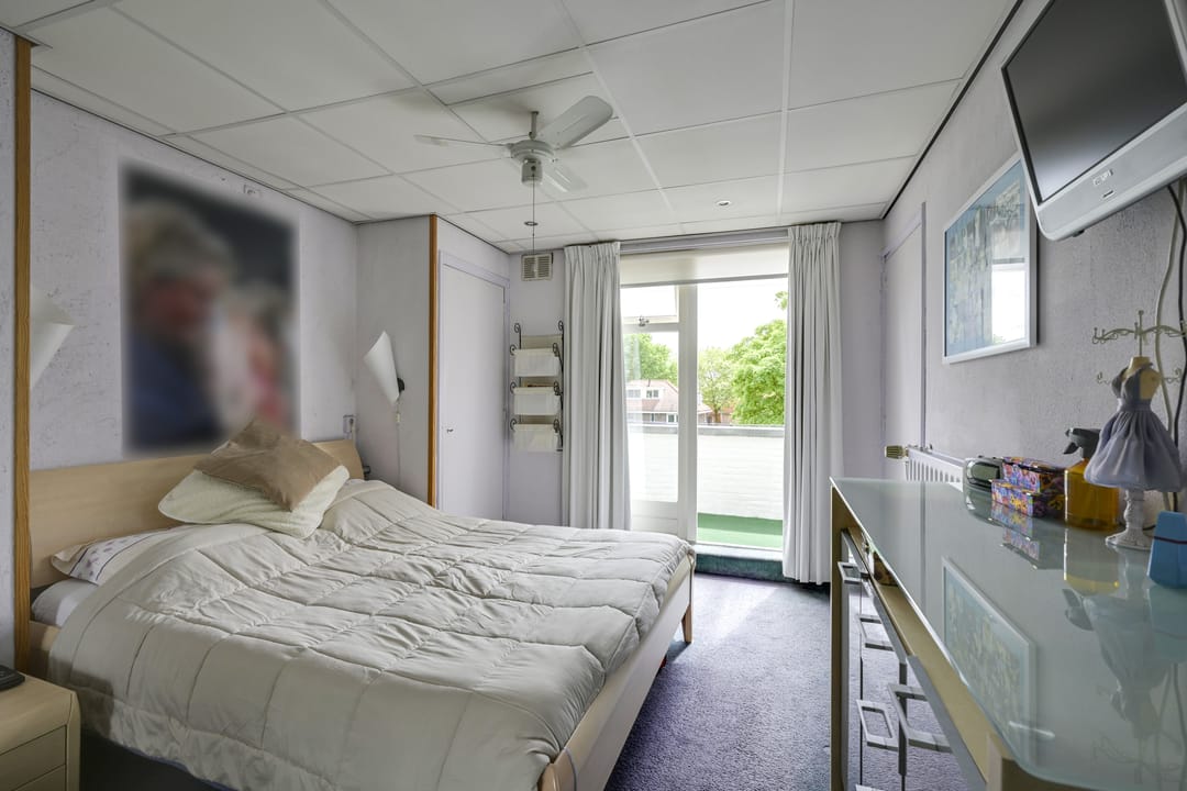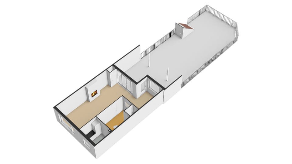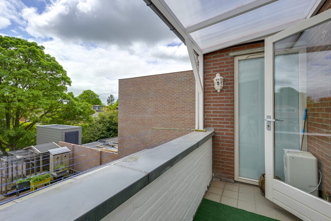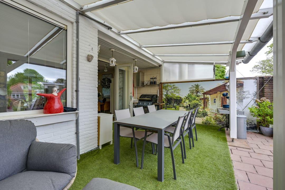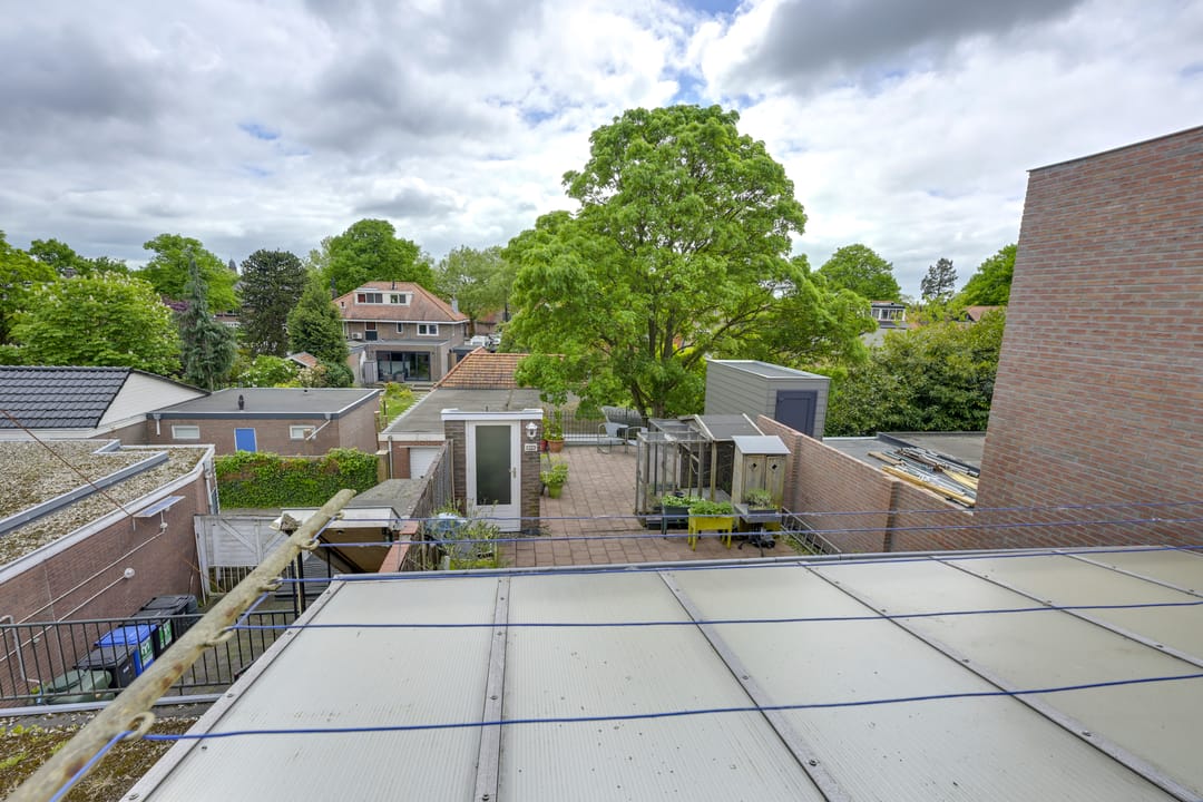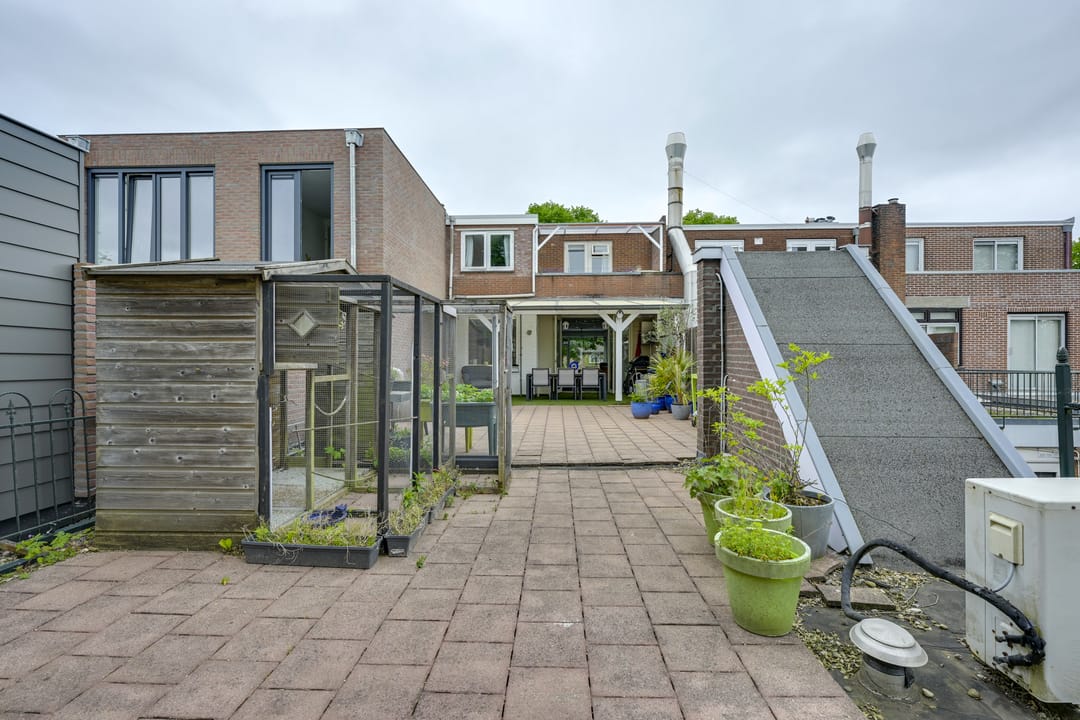 Via openslaande deuren bereikt u de fijne “achtertuin” in de vorm van een dakterras dat is voorzien van een ruime overkapping. Deze plek is perfect voor lange zomeravonden, barbecues en ontspannen momenten met familie of vrienden. Het terras is onderhoudsarm en biedt verrassend veel privacy. De woonruimte heeft aan de achterzijde ook een eigen en zelfstandige toegang die op het dakterras uitkomt.