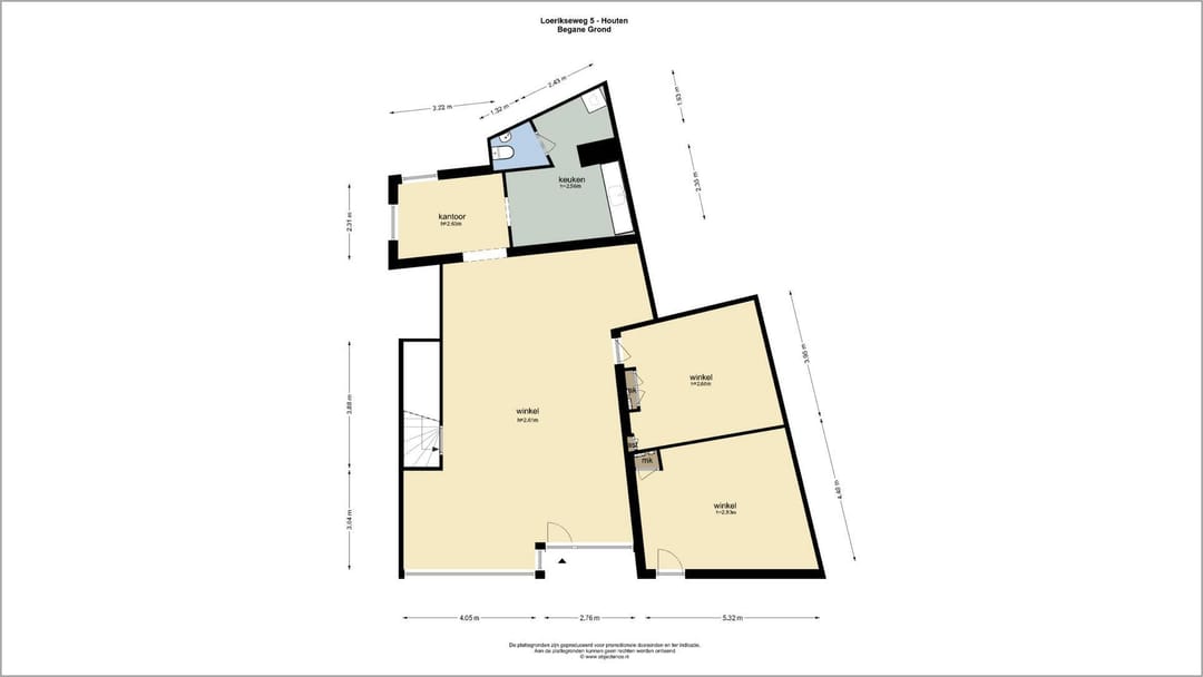 De totale winkeloppervlakte op de begane grond bedraagt circa 116 m², tevens heeft u de beschikking over circa 25 m² opslagruimte in de kelder.