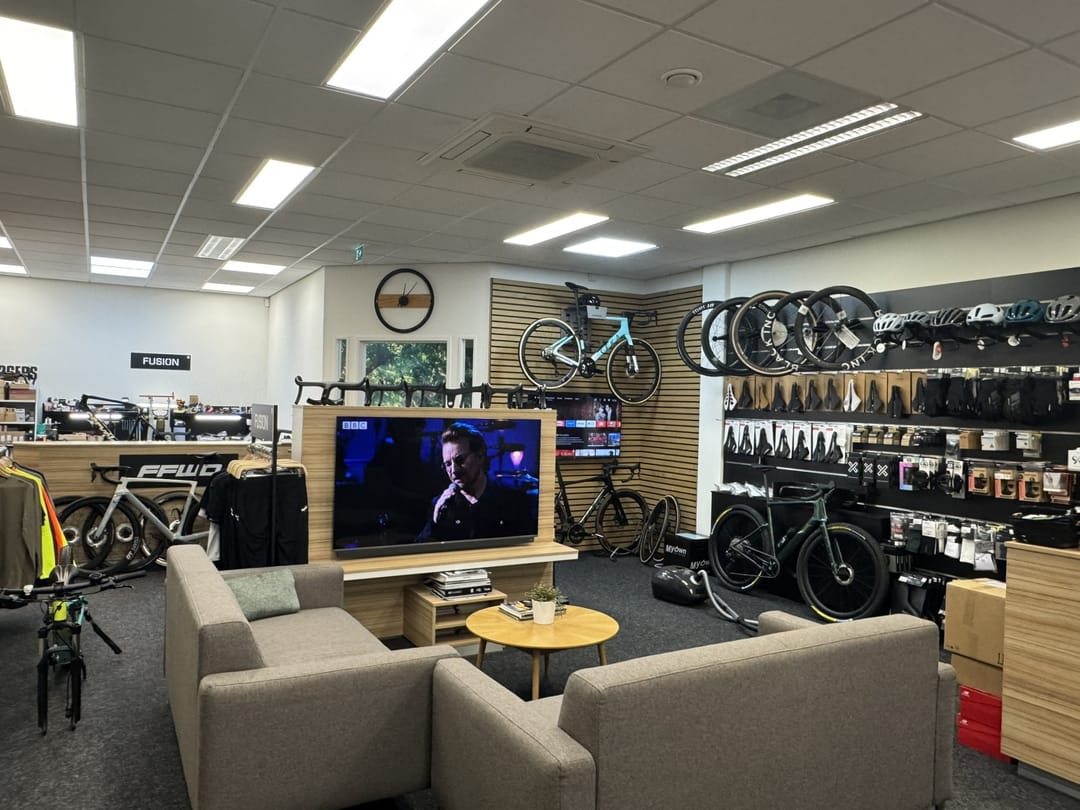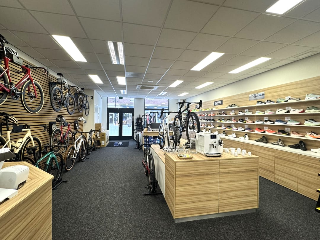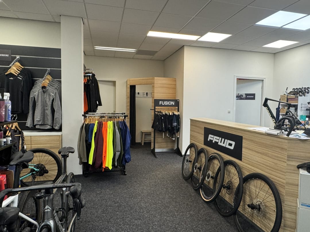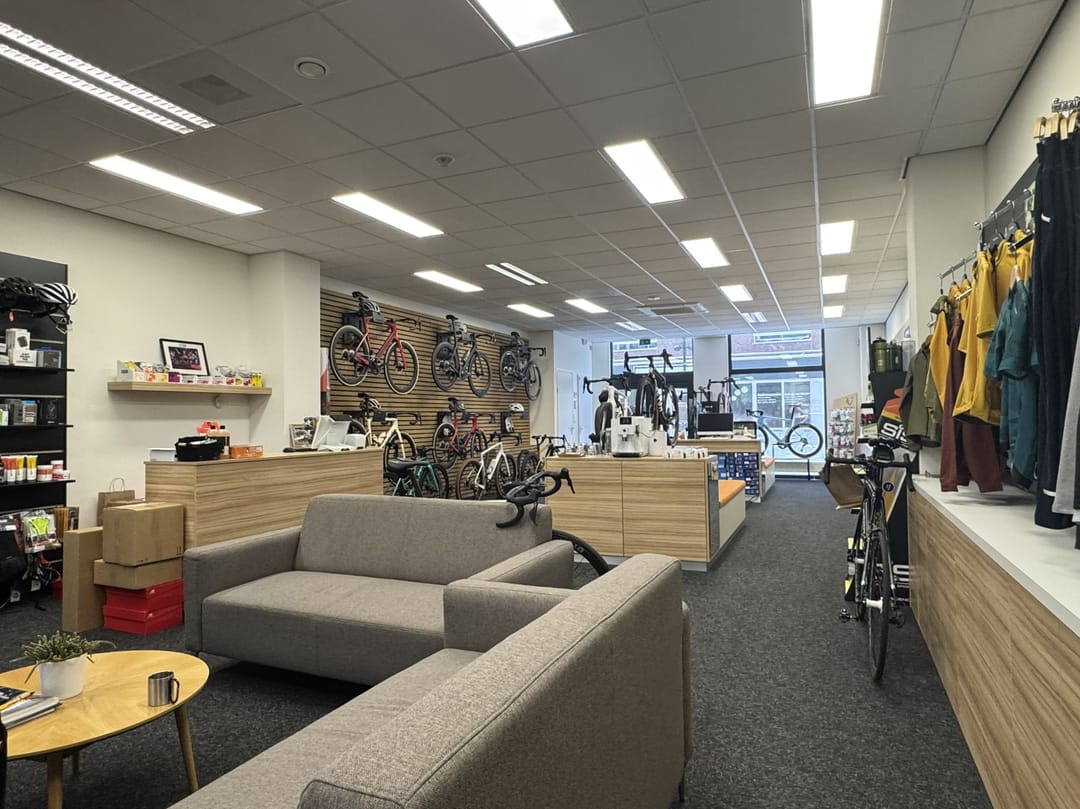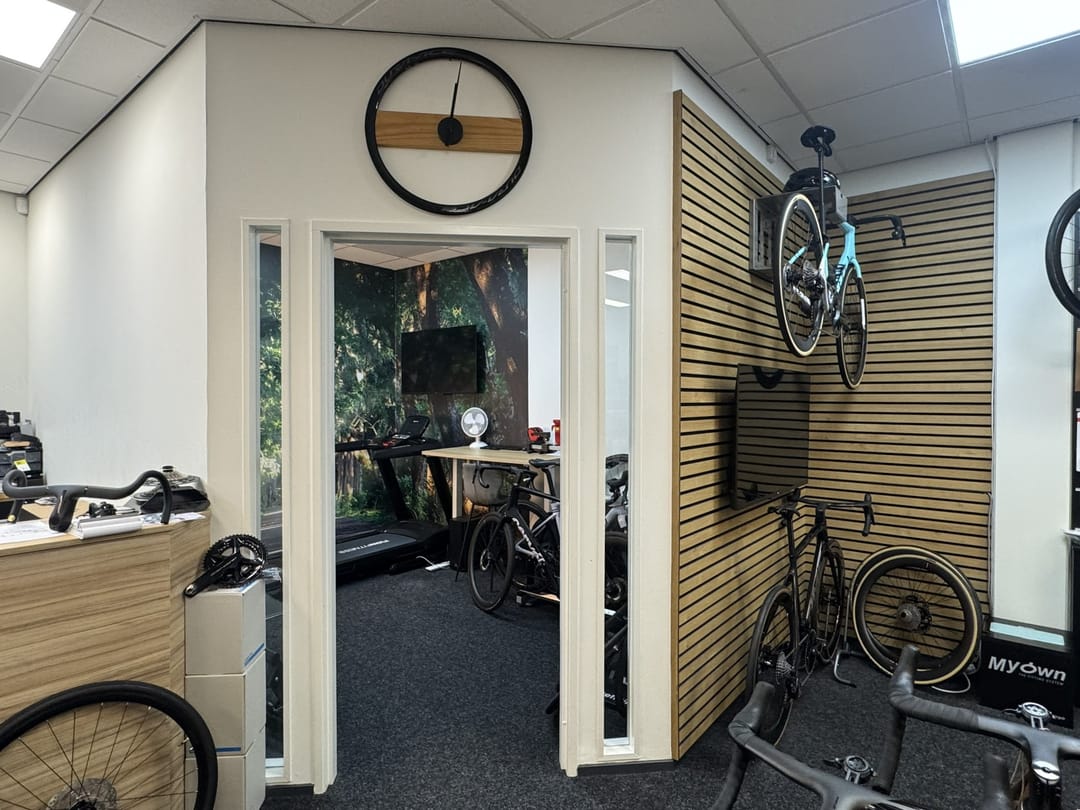 Grotendeels open en eventueel vrij nog indeelbare winkel-/kantoorruimte met aansluitend afgescheiden (spreek)kamer, keuken/kantine, ruime toiletgroep met portaal, wastafel en 2 toiletten.