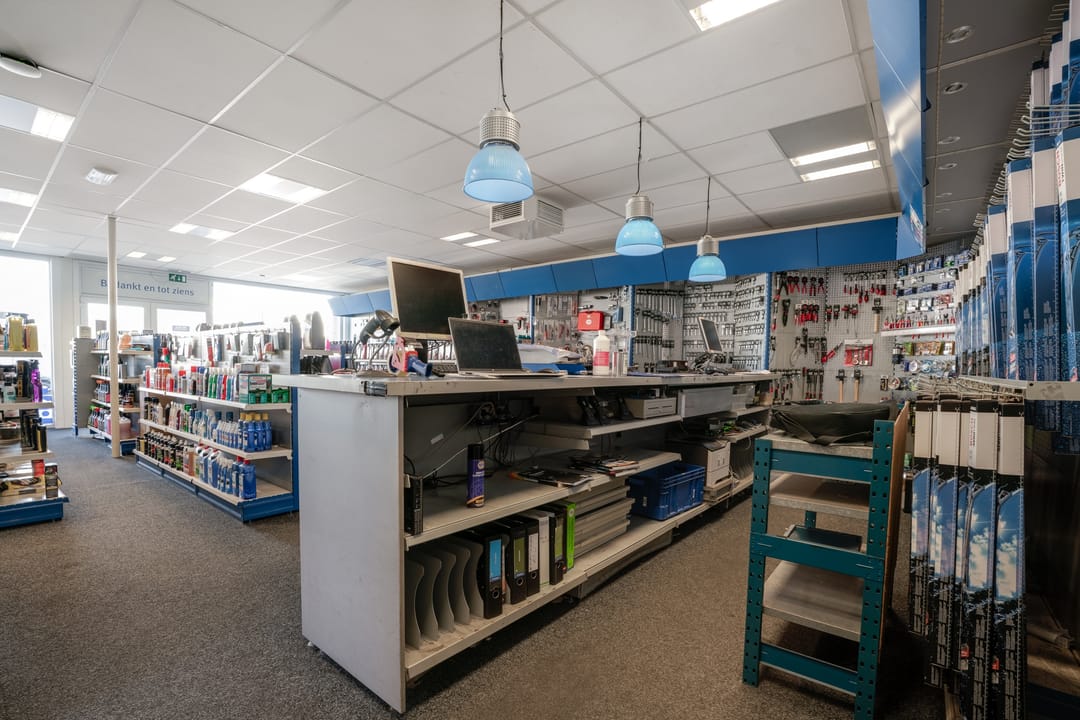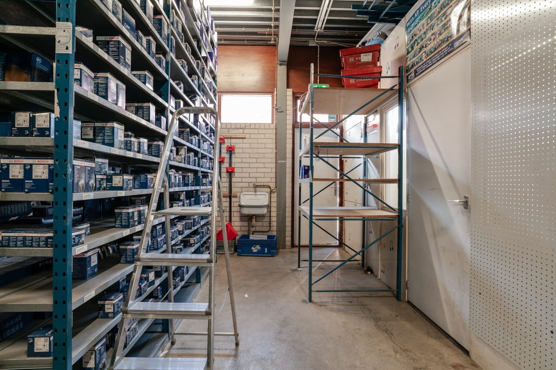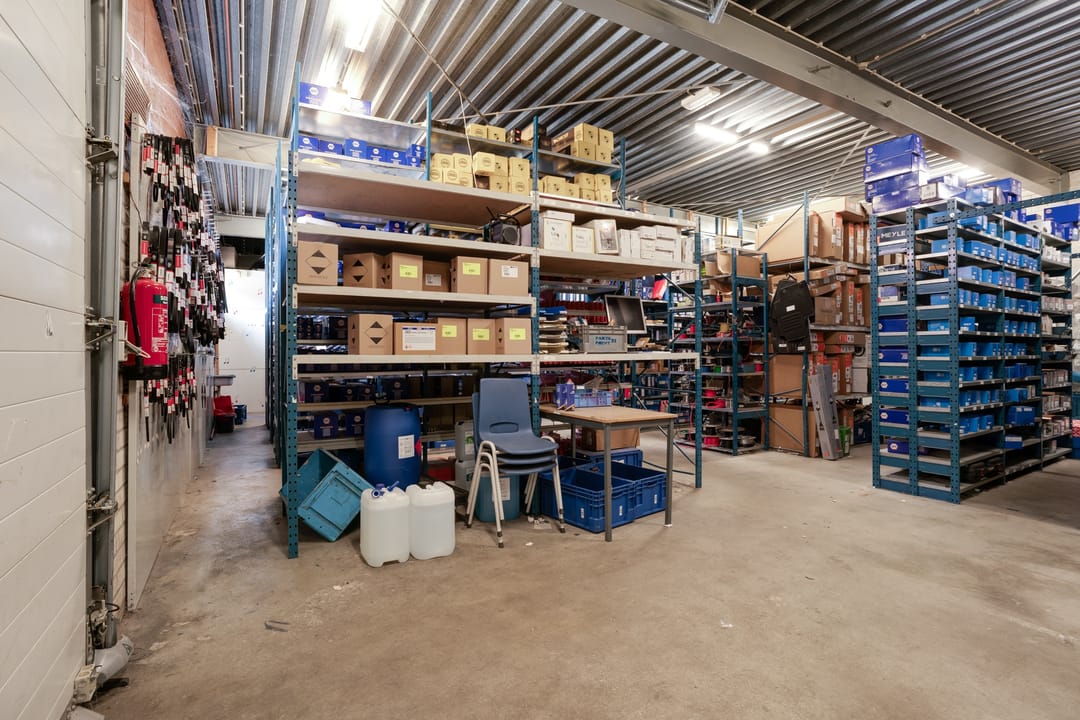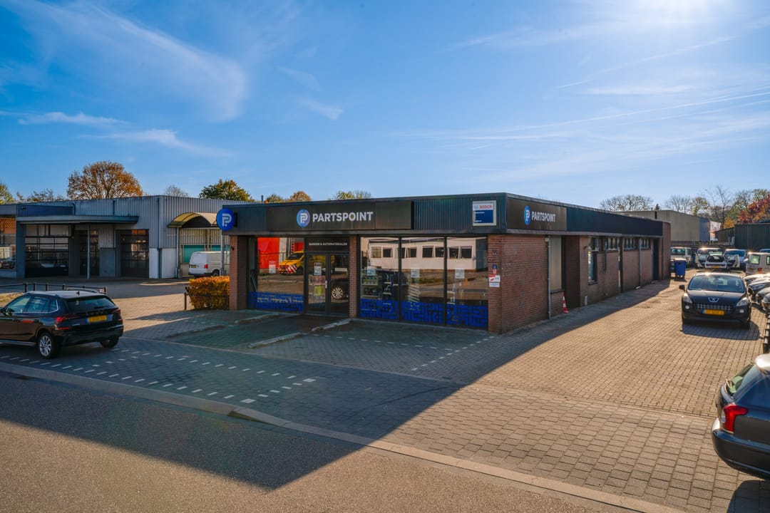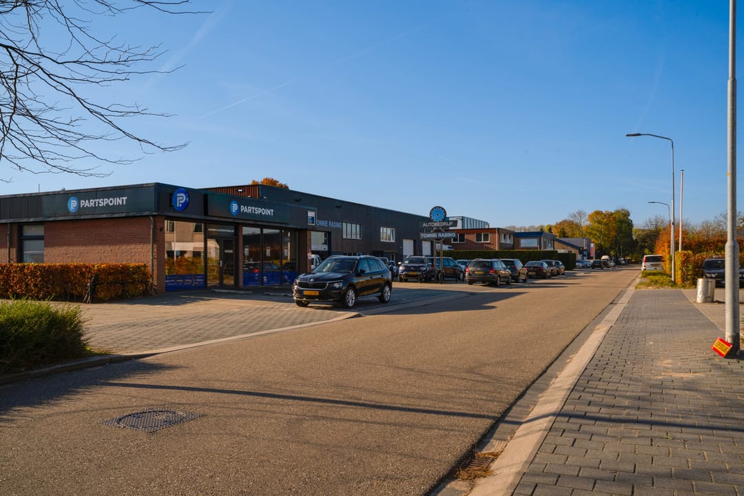 Entree, winkel/kantoorruimte (105 m²), pantry, toiletgroep, berging, kantoor, grote multifunctionele bedrijfsruimte (180 m²) met overheaddeur.