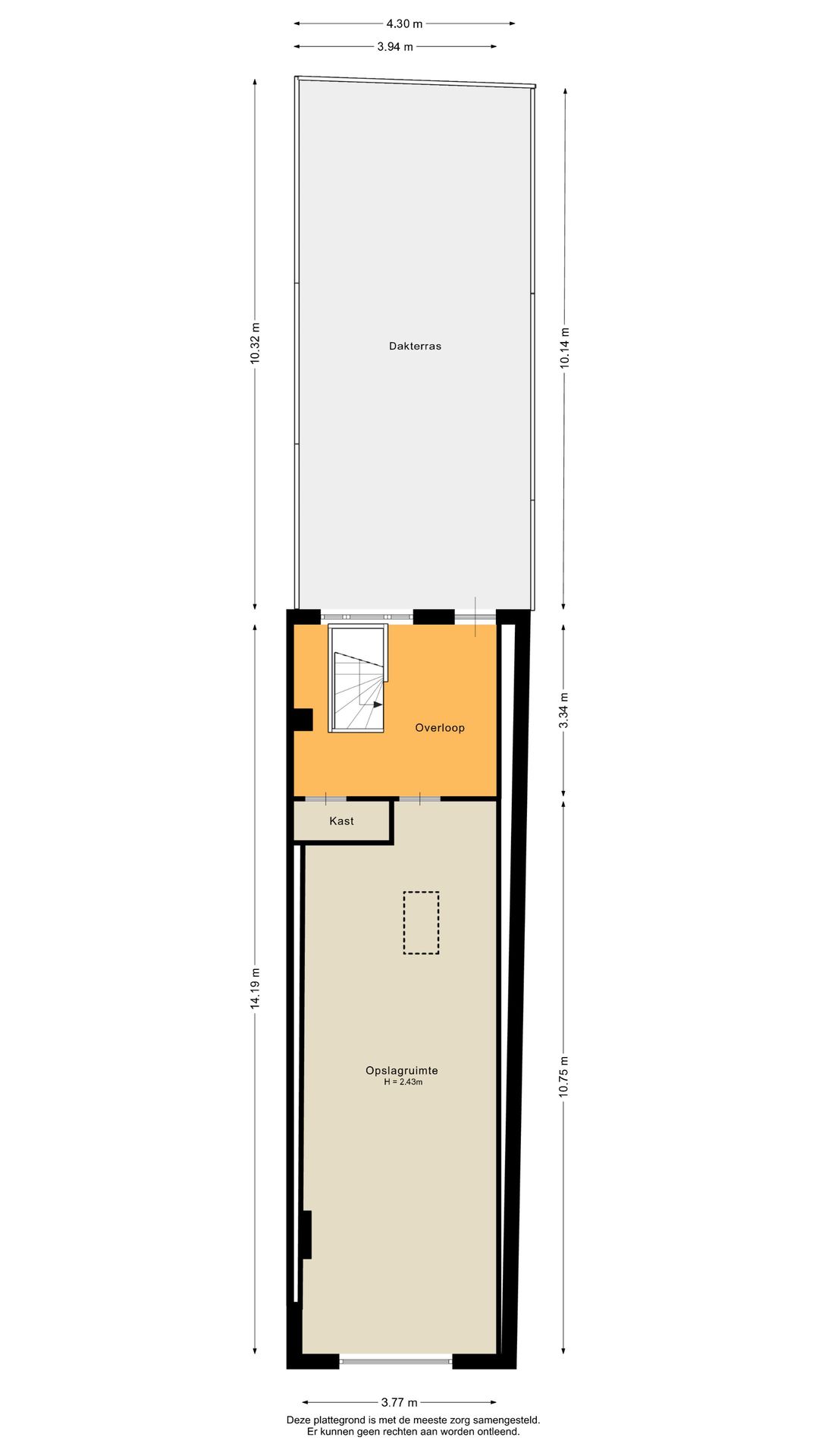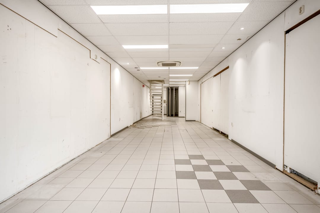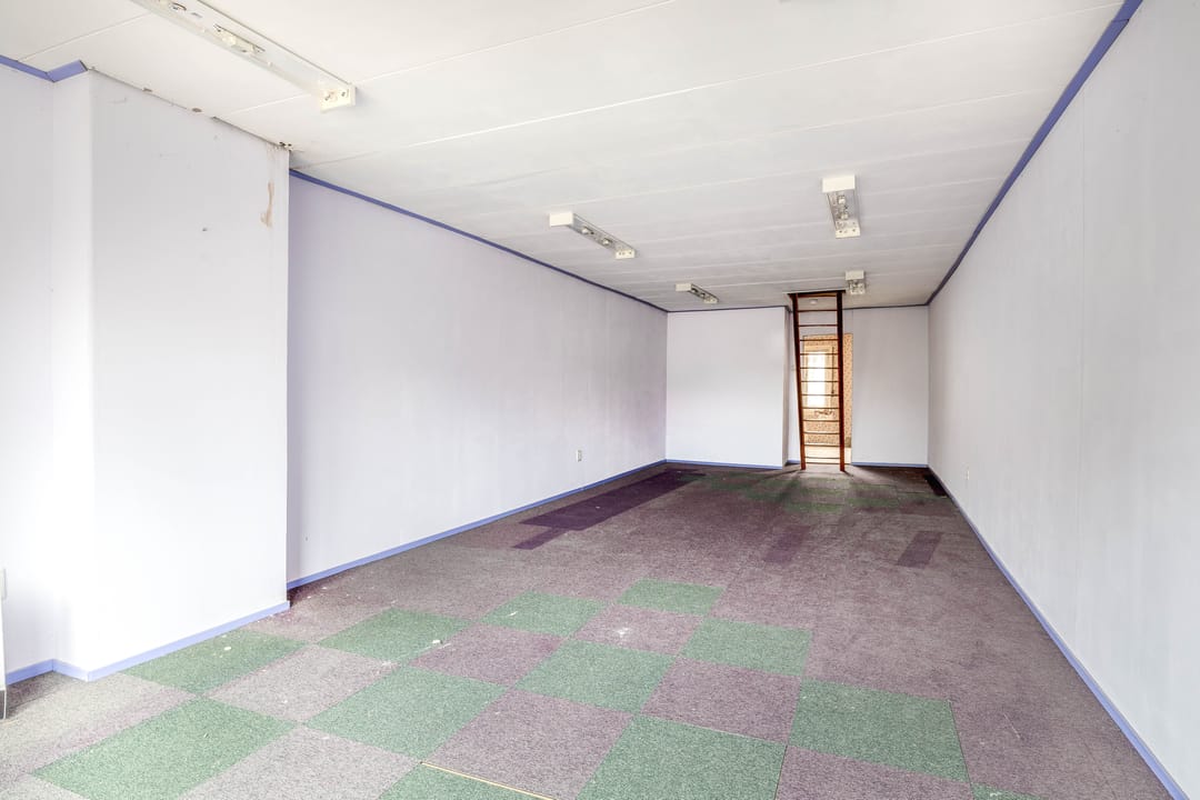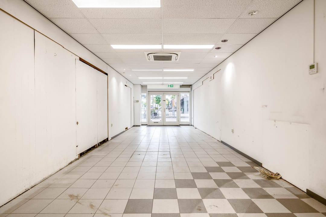 De winkelruimte op de begane grond is diep (ca. 18 meter) en praktisch ingedeeld met systeemplafond, tegelvloer, airco-unit en een brede entree met dubbele glazen deuren en vitrines. Achter in het pand bevindt zich een pantry/keuken, toilet en extra opslagruimte. Een vaste spiltrap leidt naar de eerste verdieping. Hier vind je een royale ruimte van ca. 40 m², ideaal als kantoor, opslag of magazijn, met toegang tot een groot dakterras van ruim 40 m², een verrassende extra. Op de tweede verdieping bevindt zich een zolderruimte met stahoogte (2,00 m in de nok), wat extra opslagmogelijkheden biedt. De totale netto gebruiksoppervlakte van het object bedraagt circa 156 m².