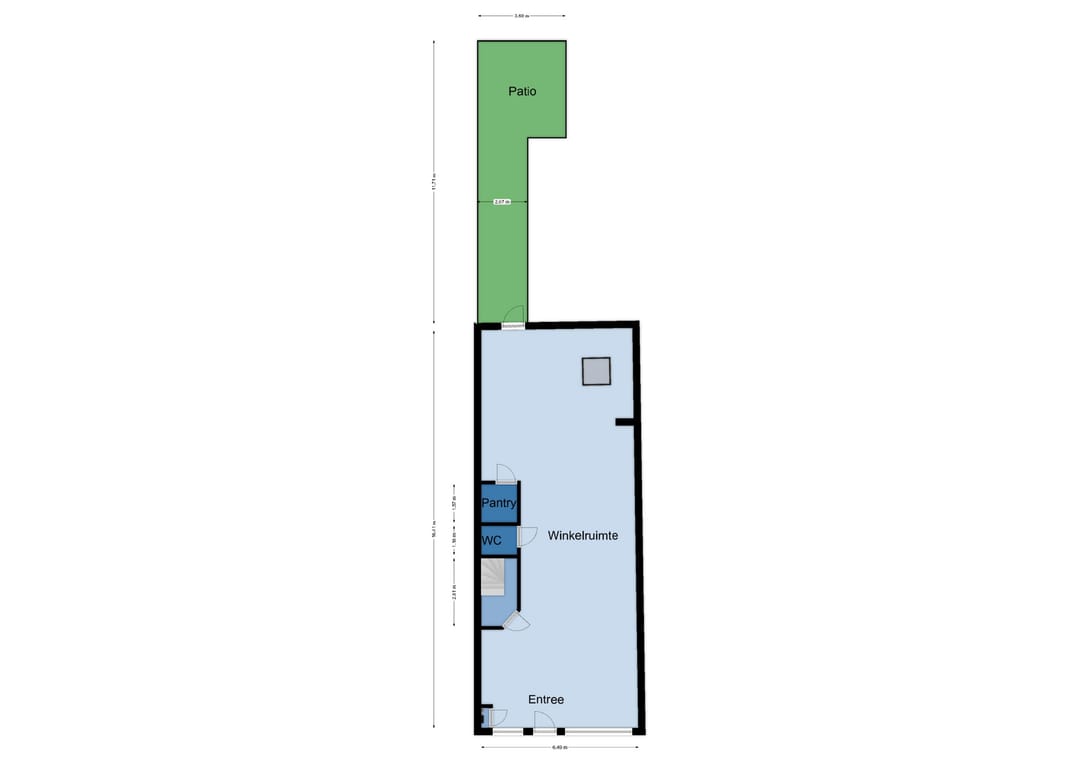 Het betreft een pand met op de begane grond een winkel-, kantoor- of maatschappelijke ruimte van circa 100 m² VVO. De eerste en tweede verdieping worden thans gebruikt als opslag en personeelsruimte en omvatten gezamenlijk circa 162 m² VVO. De bovenverdiepingen hebben in het verleden dienstgedaan als woonruimte en verkeren in gedateerde staat. Aan de achterzijde van het object bevindt zich een patio. Er is geen achterom. Het laden en lossen geschiedt via de voorzijde.
