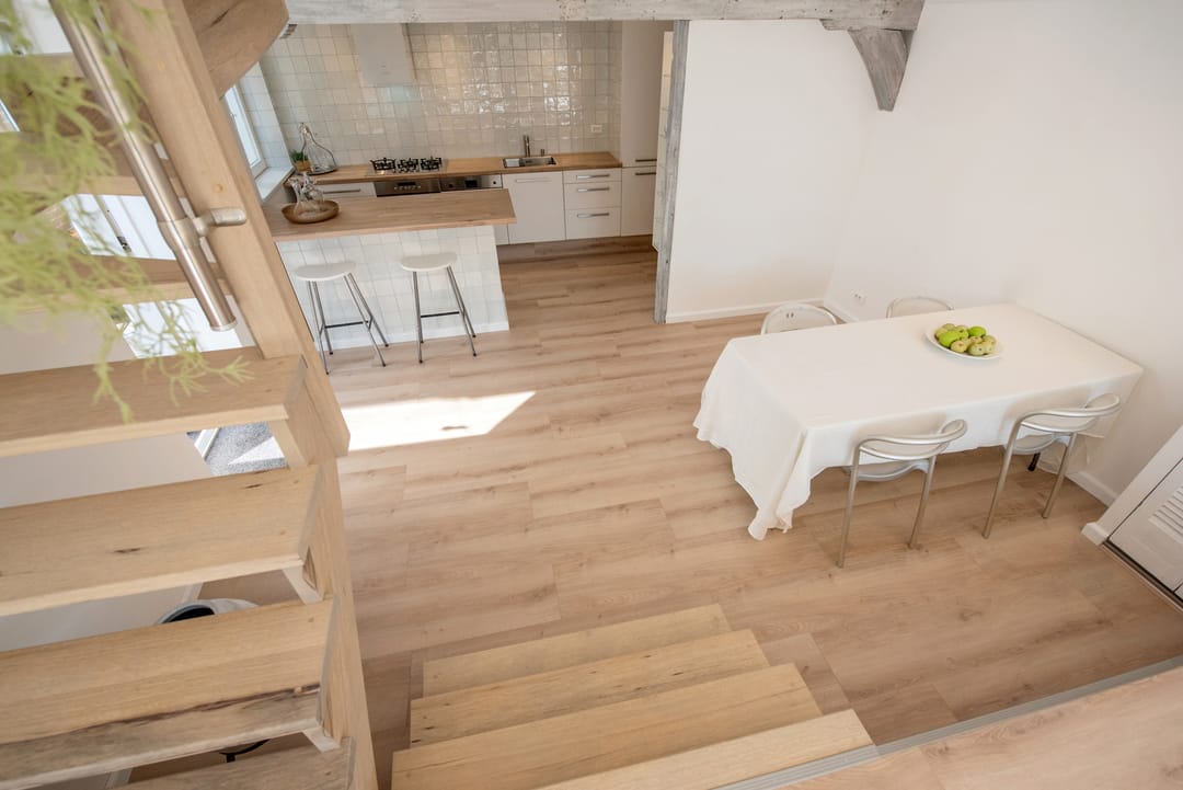 - 1e verdieping met eigen terras, ruime woonkamer en open keuken