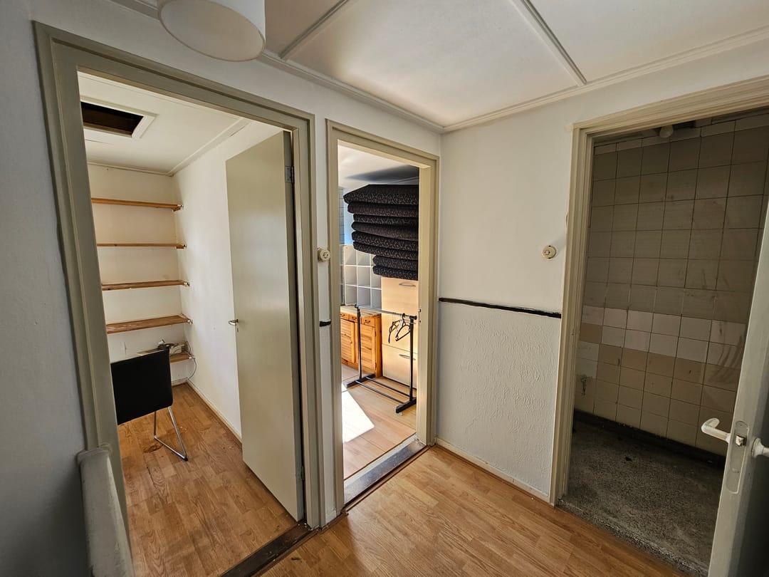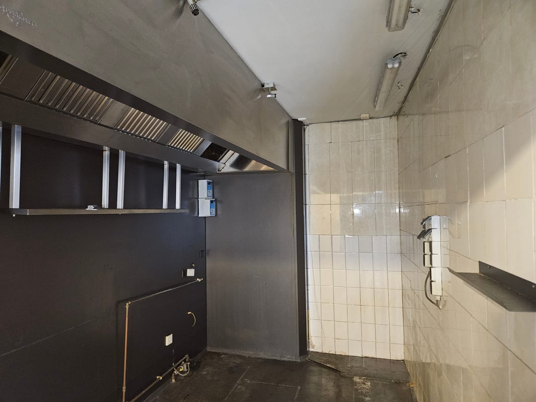 - Keuken v.v. afzuiginstallatie en schrobput en deels betegeld.