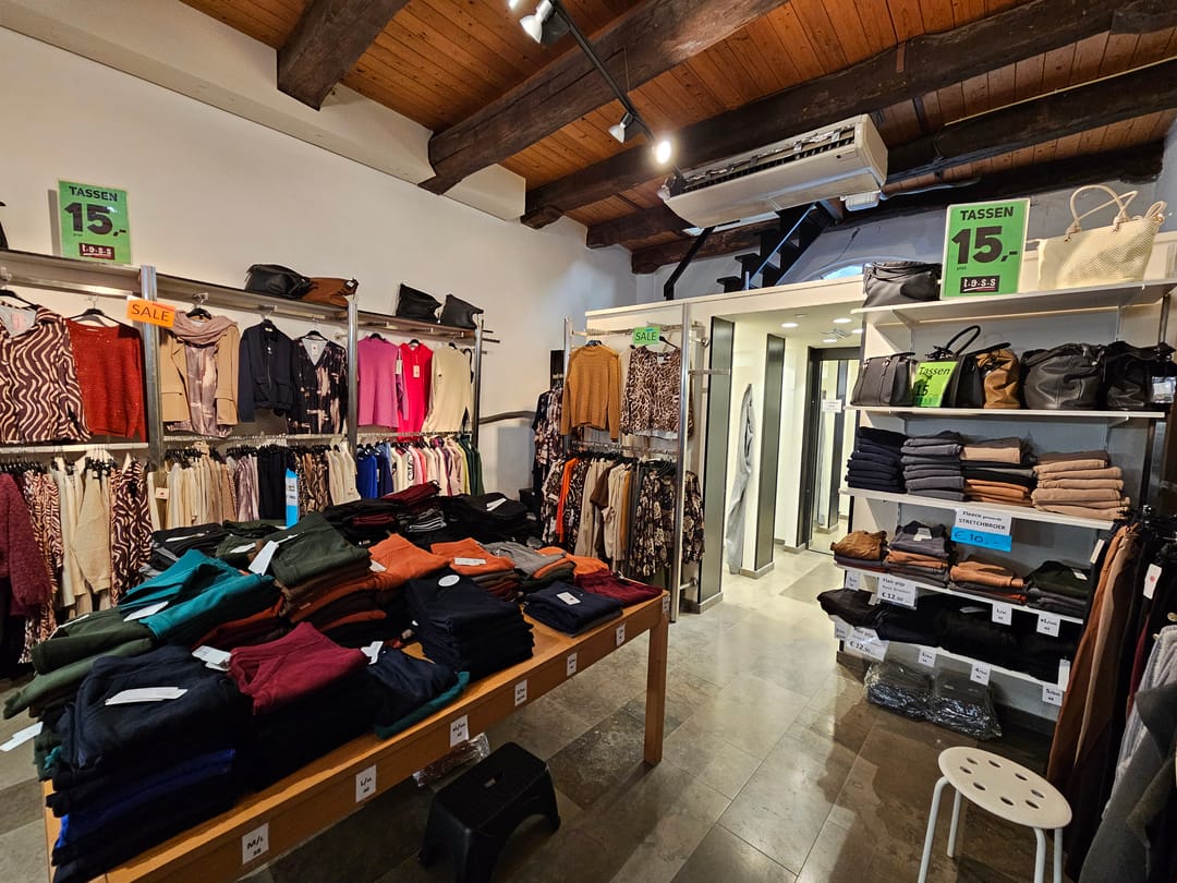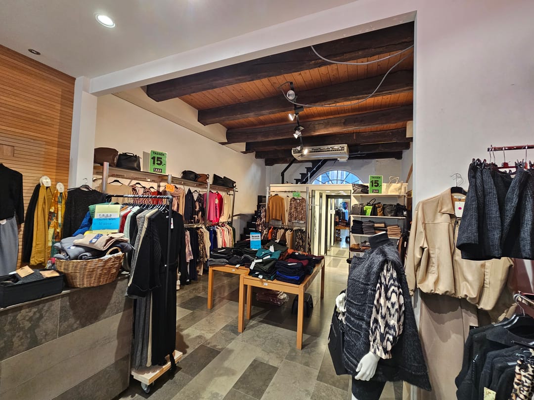 De winkel is voorzien van 6 kleedkamers en een mooie verkoopbalie op de verdieping is een pantry en zijn er ruimtes geschikt voor het ordenen van de voorraad.