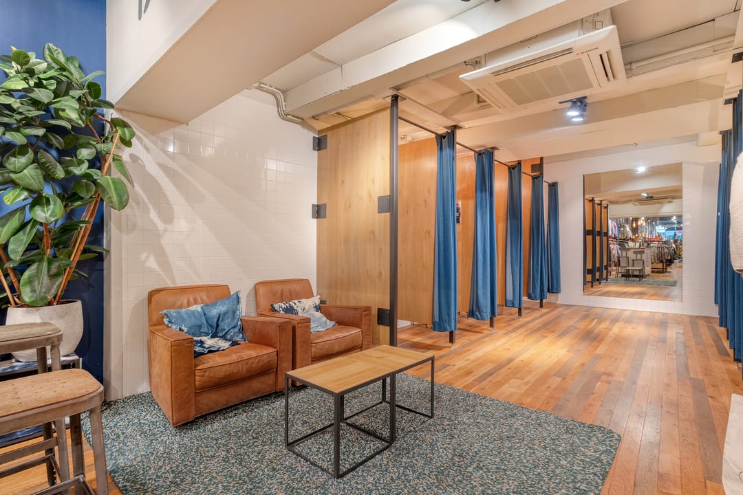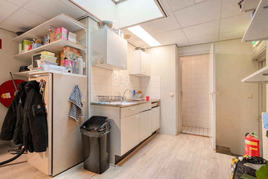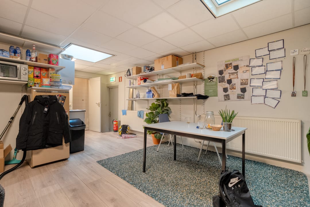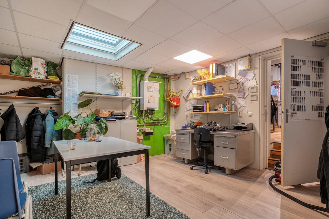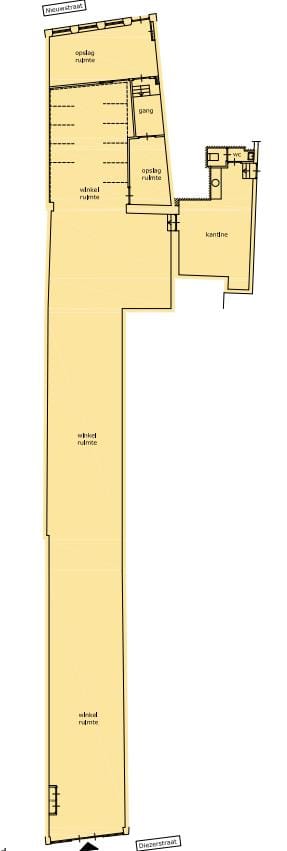 Aan de achterzijde van de verkoopvloer bevinden zich in de huidige situatie de kleedkamers en een magazijn met toegang tot de achter gelegen bevoorradingsstraat (Nieuwstraat). Achterin de winkel bevindt zich op dit moment ook de personeelsruimte. Met een goed bouwkundig oog is vergroting van de verkoopruimte een optie.