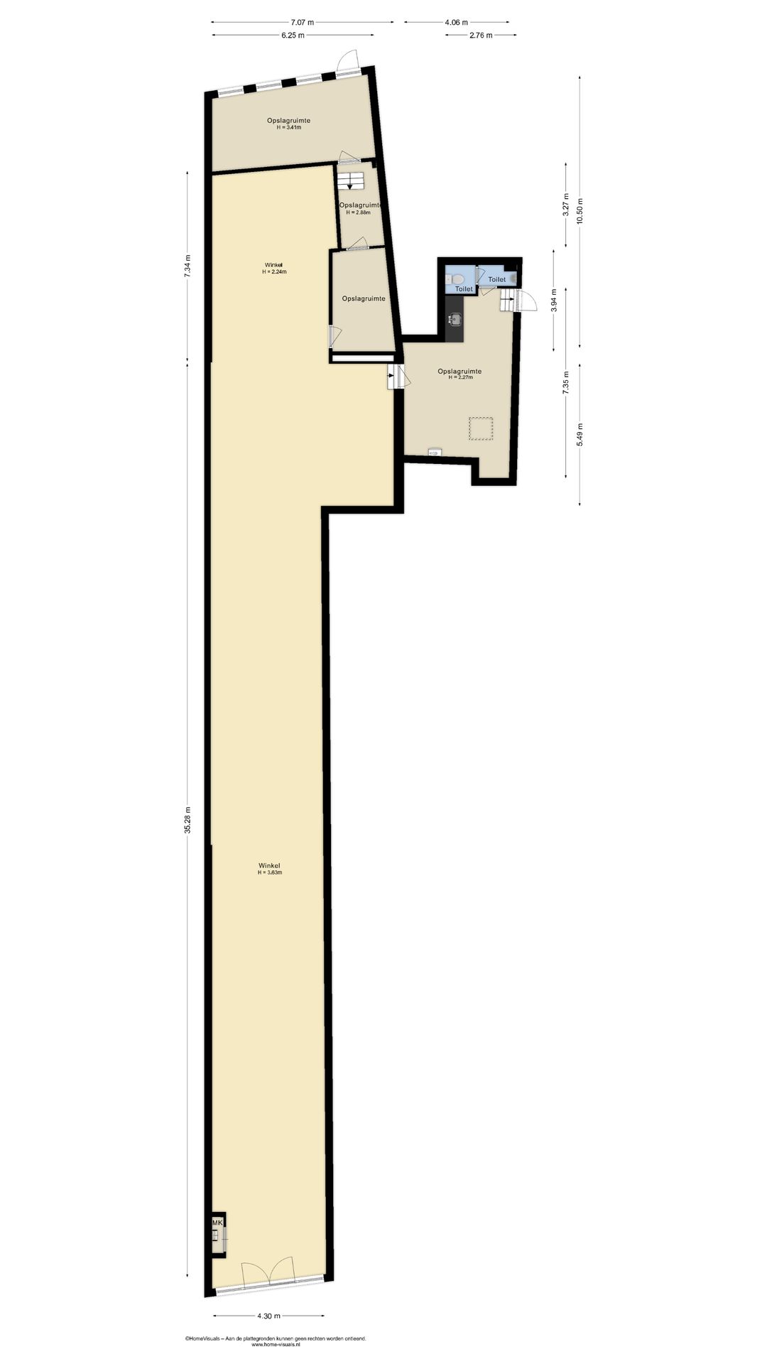 Entree, verkoopruimte, magazijn met bevoorradingstoegang, personeelsruimte met pantry, toilet en vluchtroute
