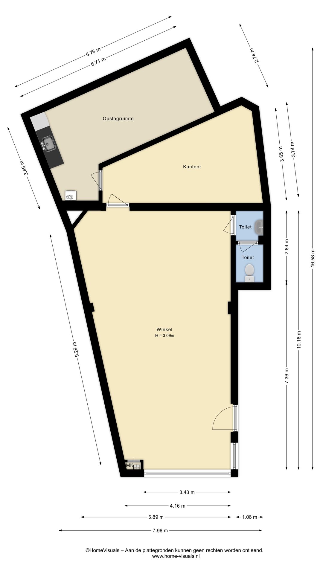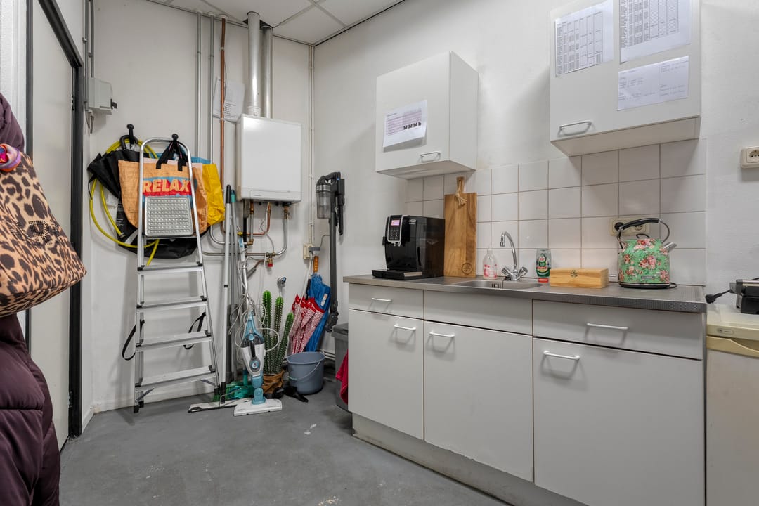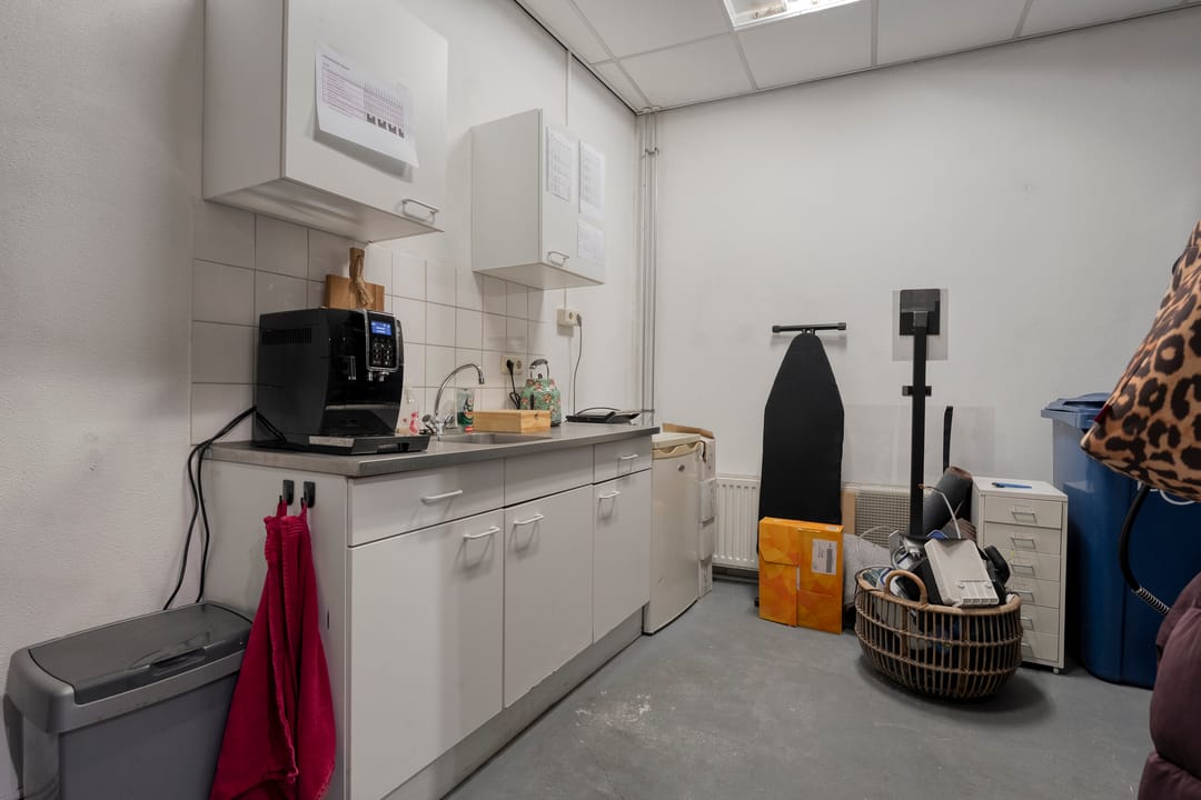 Entree, winkelruimte, magazijnruimte, kantine met pantry en toilet.