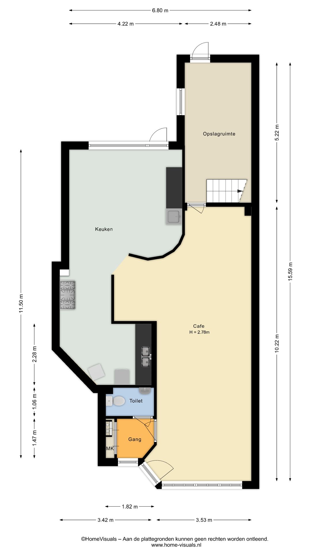 Entree, bedrijfsruimte, toilet en magazijn