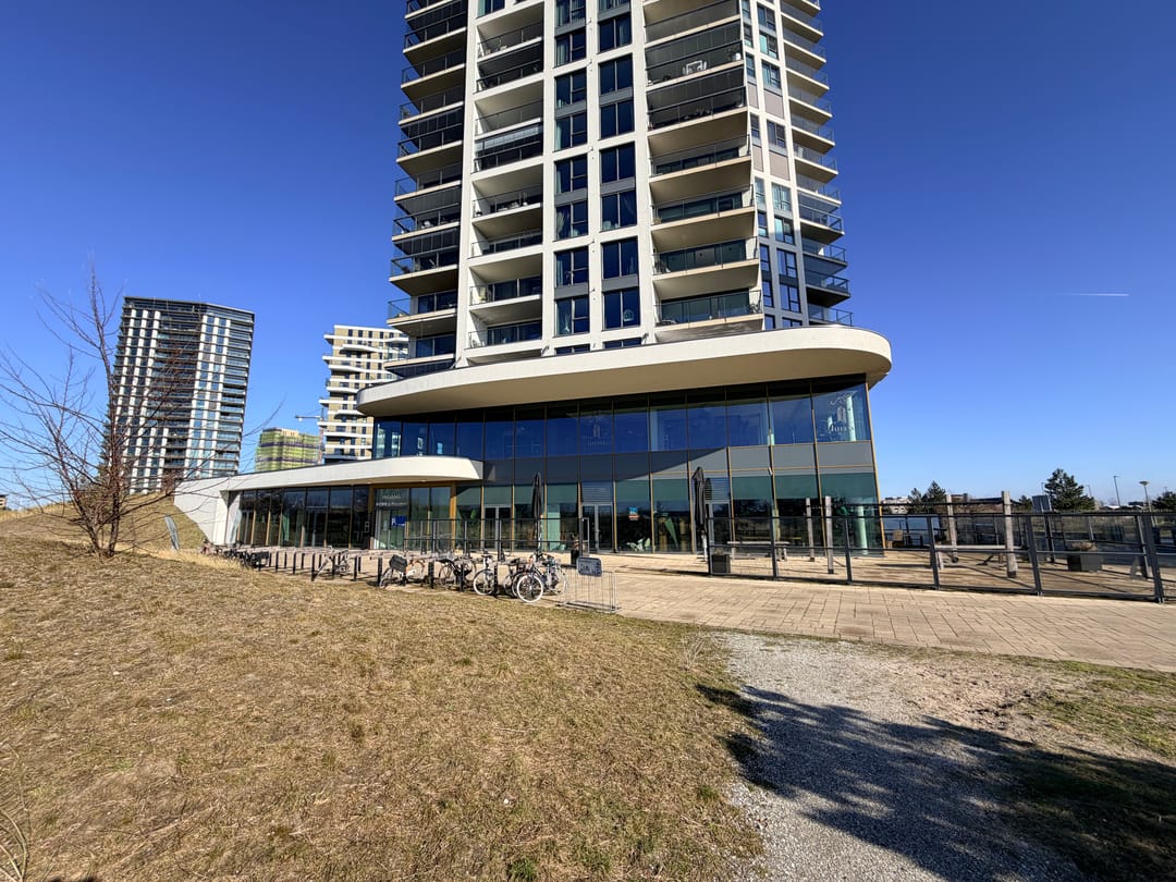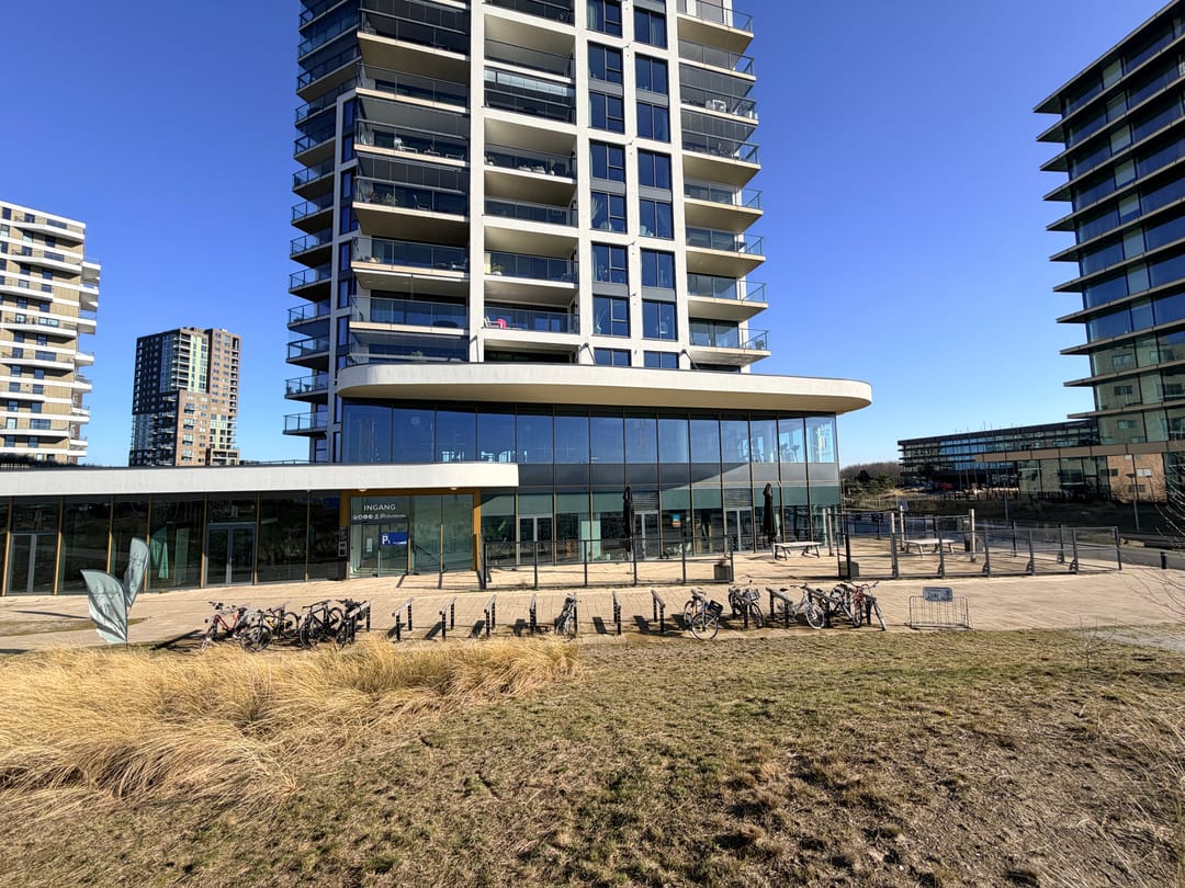 De directe omgeving ontwikkelt zich in hoog tempo tot een levendig stadsdeel met horecagelegenheden, winkels en diverse bedrijvigheid, wat zorgt voor een dynamische en inspirerende werkomgeving. De nabijheid van het strand van Almere Duin maakt deze locatie bovendien een prettige plek om te werken en klanten te ontvangen.