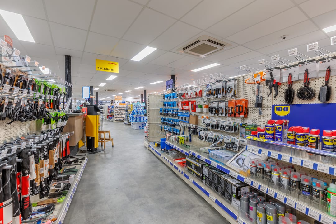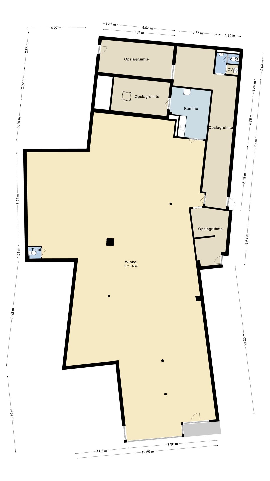 De ruimte is thans in gebruik als winkelruimte met magazijn en kantine.
