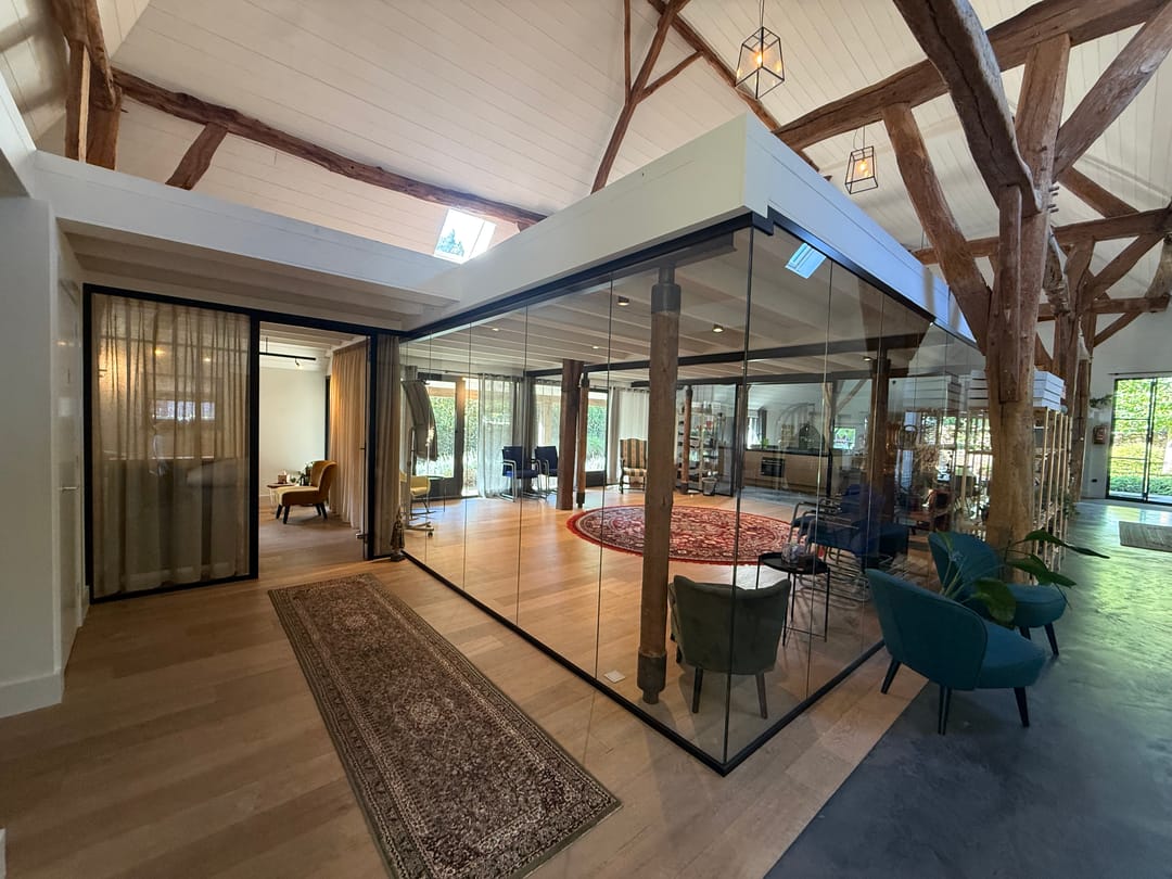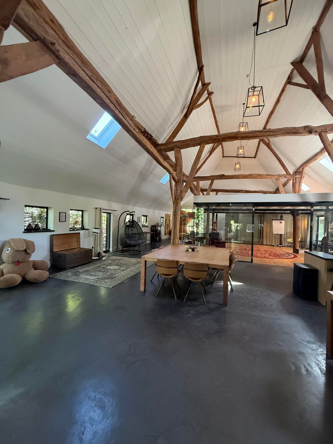 De schuur heeft een vloeroppervlakte van ca. 234 m2, die uitgebreid kan worden op de vide. De schuur beschikt over diverse voorzieningen, zoals een afsluitbare ruime met een afmeting van ca. 7 x 6 m, geschikt als vergader-, trainings- of kantoorruimte, en een afsluitbare kantoor- of behandelruimte met een afmeting van 2,5 x 4,5 m. Daarnaast beschikt de Schuur over een moderne, handgemaakte keuken (2022) voorzien van kookeiland, spoelbak, kookplaat, vaatwasser en combi-magnetron.