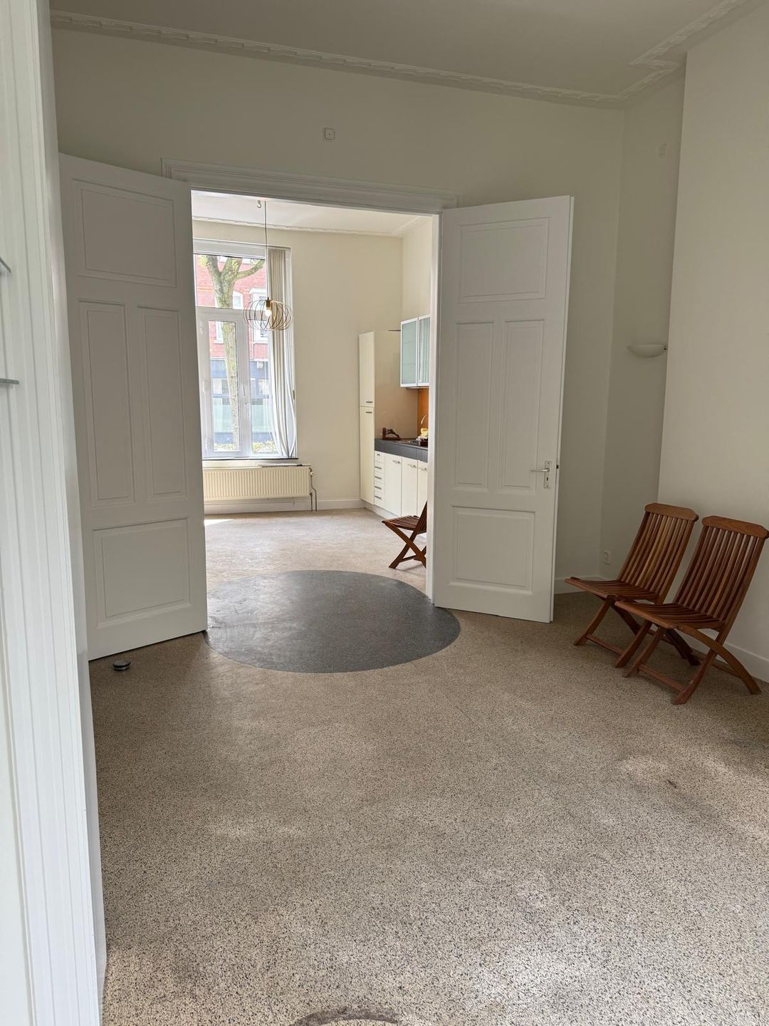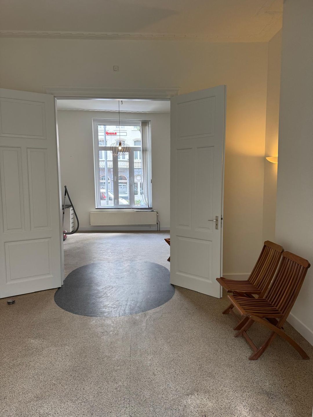 De ruimte bevindt zich op de begane grond en beschikt over een representatieve entree en originele details die bijdragen aan een karaktervolle uitstraling. Er zijn twee kamers ensuite met grote houten tussendeuren, waarbij beide ruimtes over een eigen toegangsdeur beschikken. Daarnaast is er een eigen toilet aanwezig, bereikbaar via een trap omhoog.