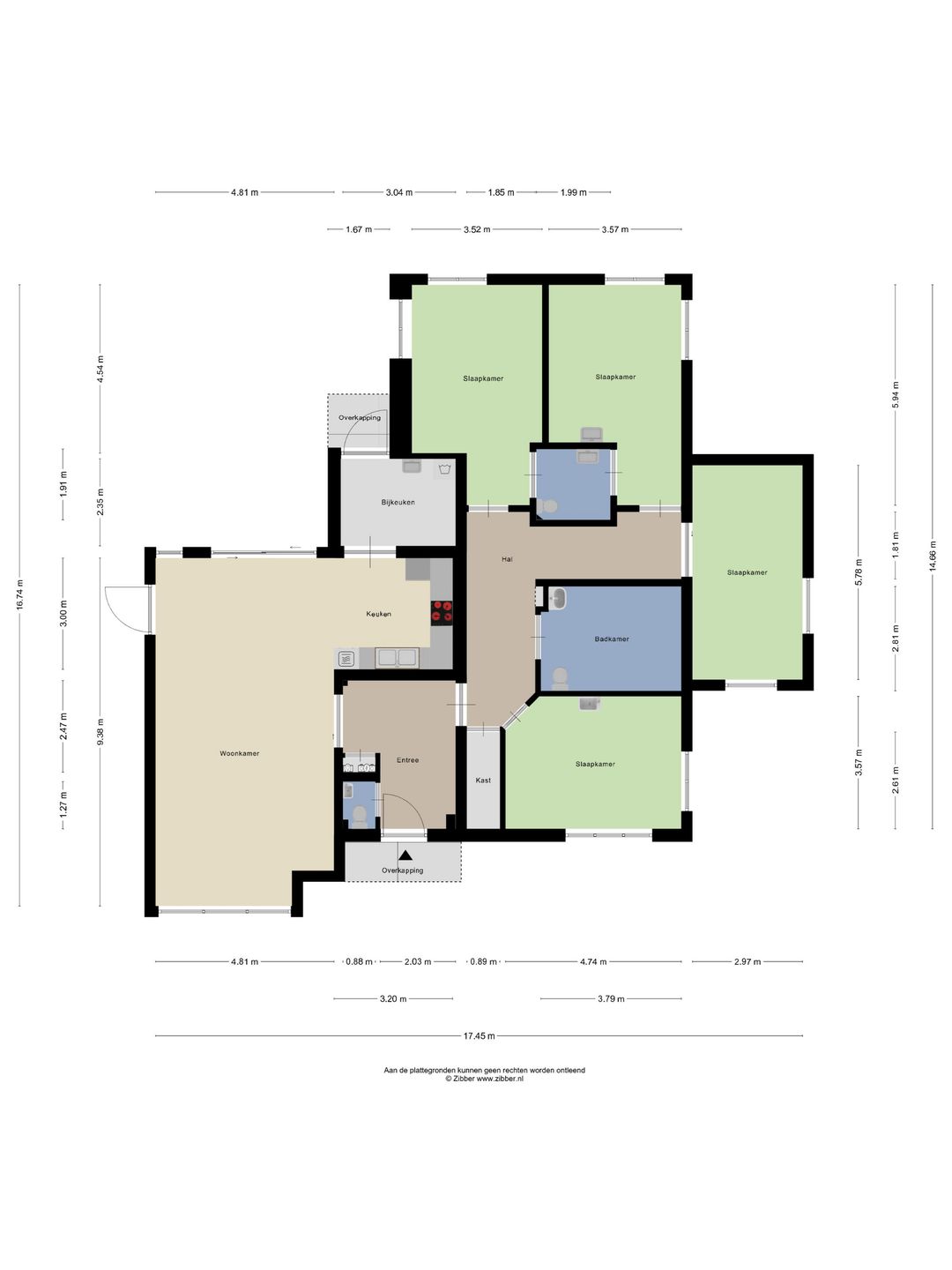 - 12 slaapvertrekken, variërend tussen ca. 15 m² en 19 m²