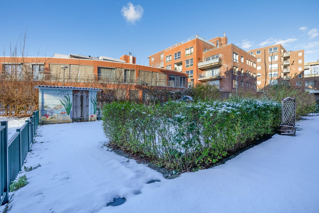 De achtergelegen tuin behoort formeel niet tot het gehuurde en is eigendom van de gemeente. De vorige huurder beschikte over een betaald gebruiksrecht. Een nieuwe huurder kan, indien gewenst, bij de gemeente een verzoek tot gebruik indienen voor deze.