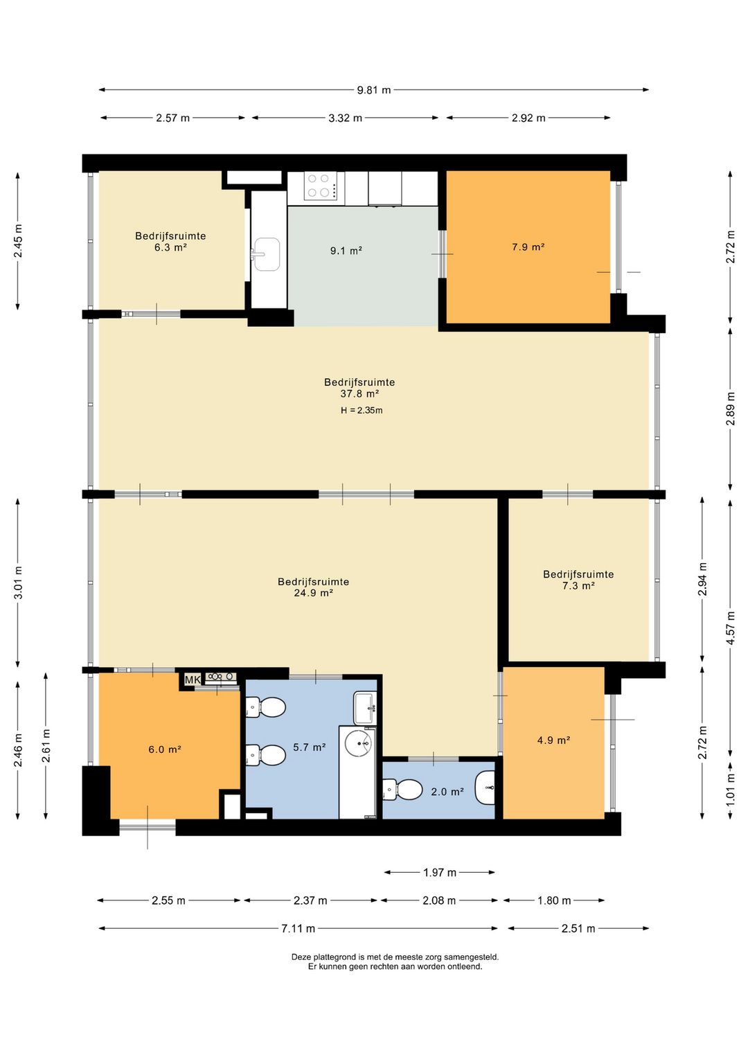 Algemeen: al het bovenstaande betreft informatie omtrent de verhuur van de Burgemeester Gijsenlaan 10, Schiedam. Deze informatie is met zorg samengesteld, maar voor de juistheid ervan kan door Van Herk Bedrijfsmakelaars geen aansprakelijkheid worden aanvaard, noch aan de vermelde gegevens enig recht worden ontleend. Nadrukkelijk is vermeld dat deze informatieverstrekking niet als een aanbieding of offerte mag worden beschouwd.