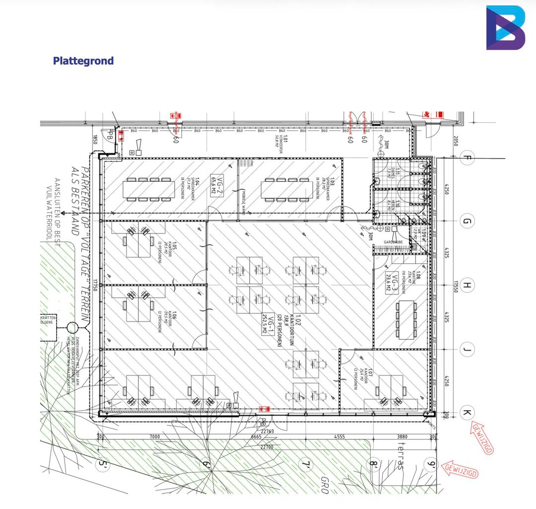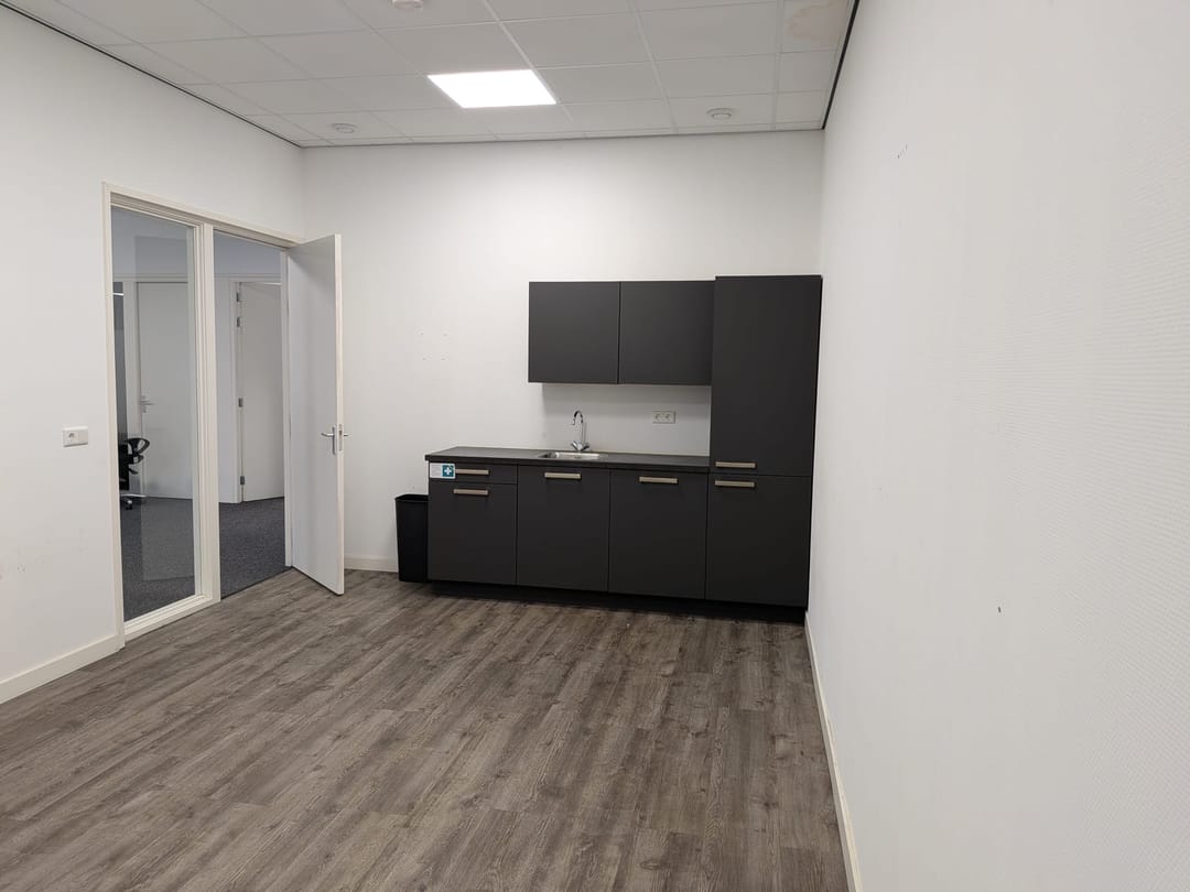 Eigen entree, centrale hal met toegang tot open kantoortuin, diverse kantoorkamers en een keukenruimte. Ook is er een buitenruimte aanwezig.